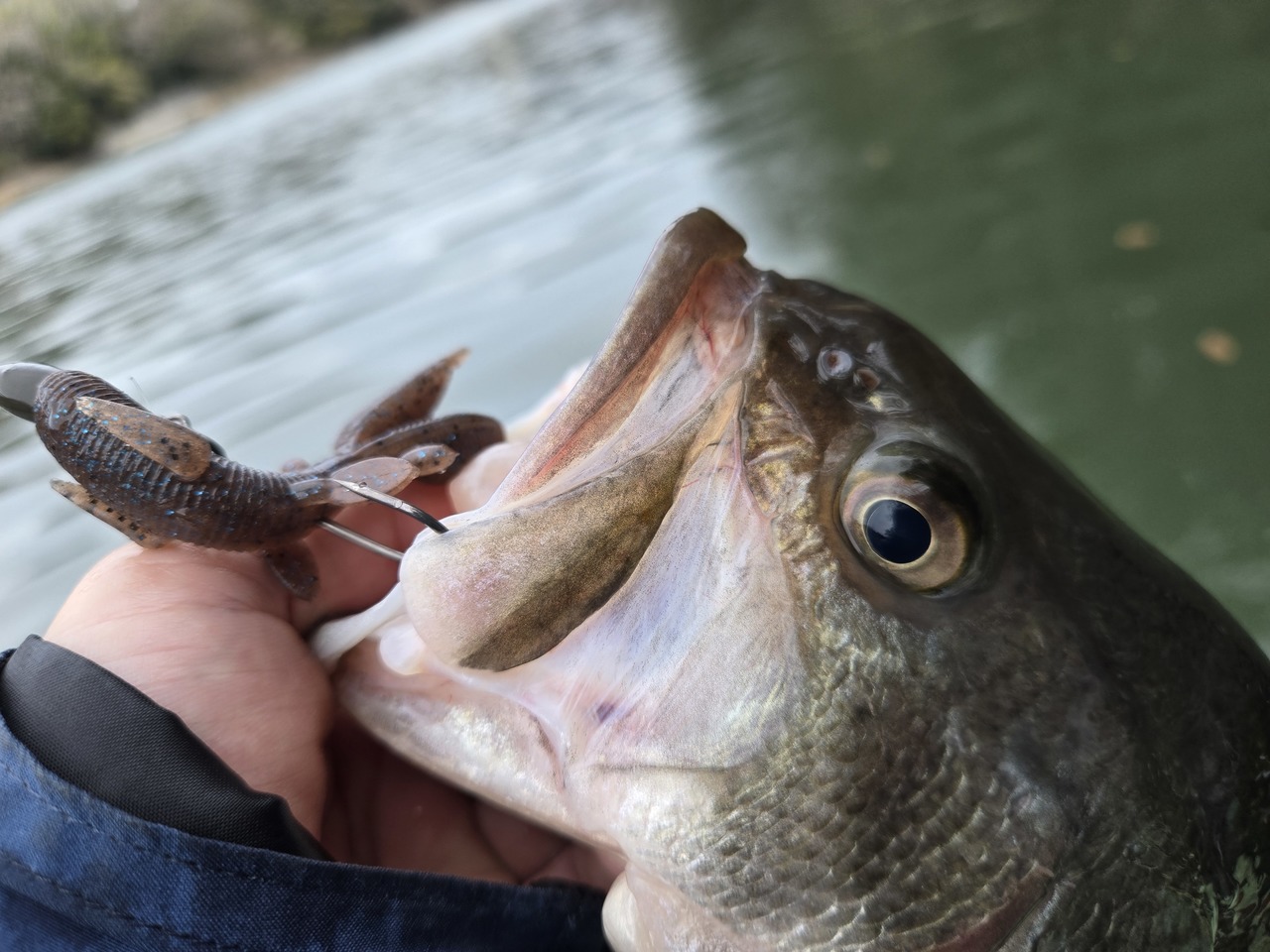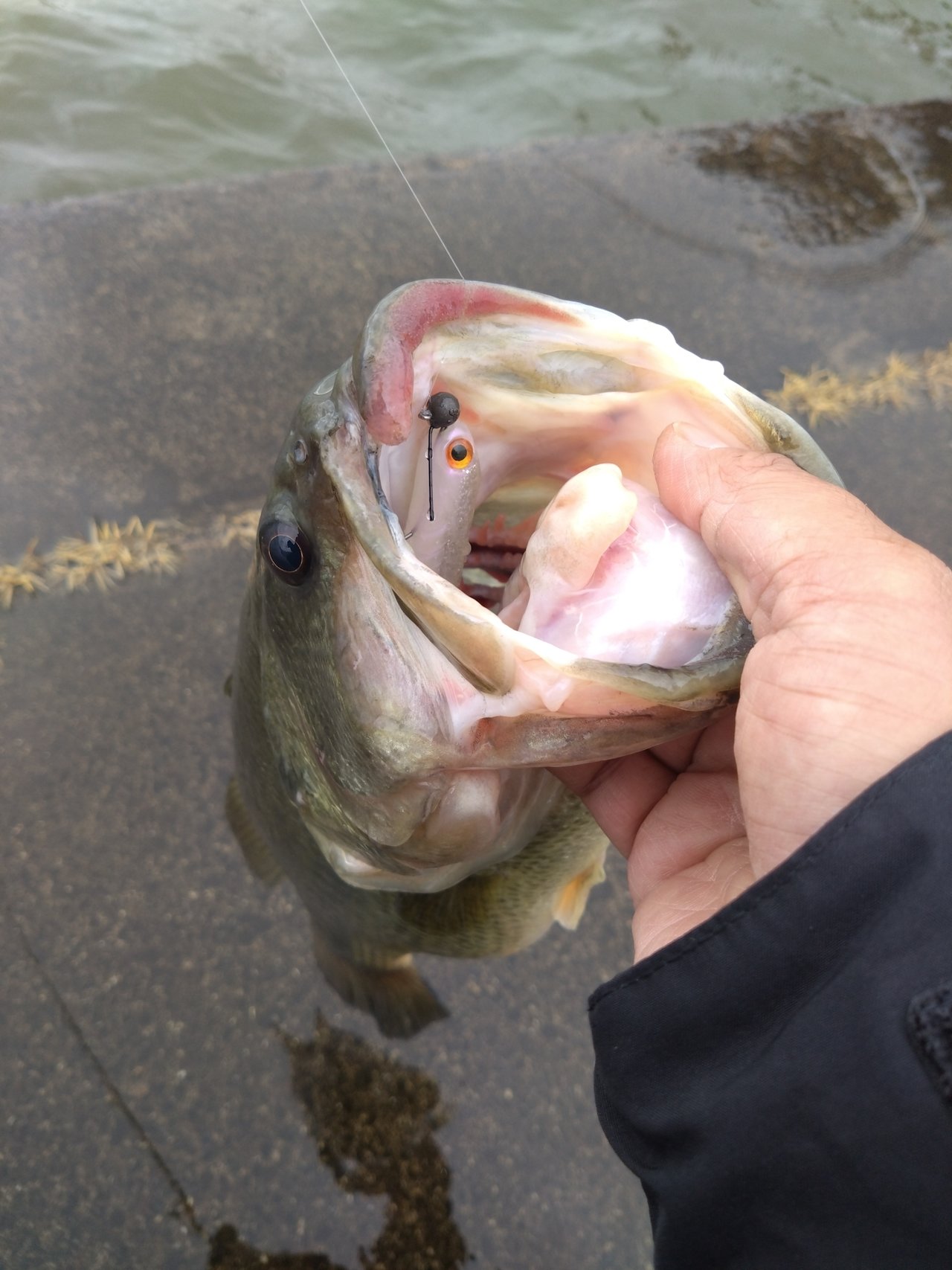釣果はモコリークローの5gテキサスで岩盤際を着底からオダに絡めていると40cmの魚をキャッチすることができました。