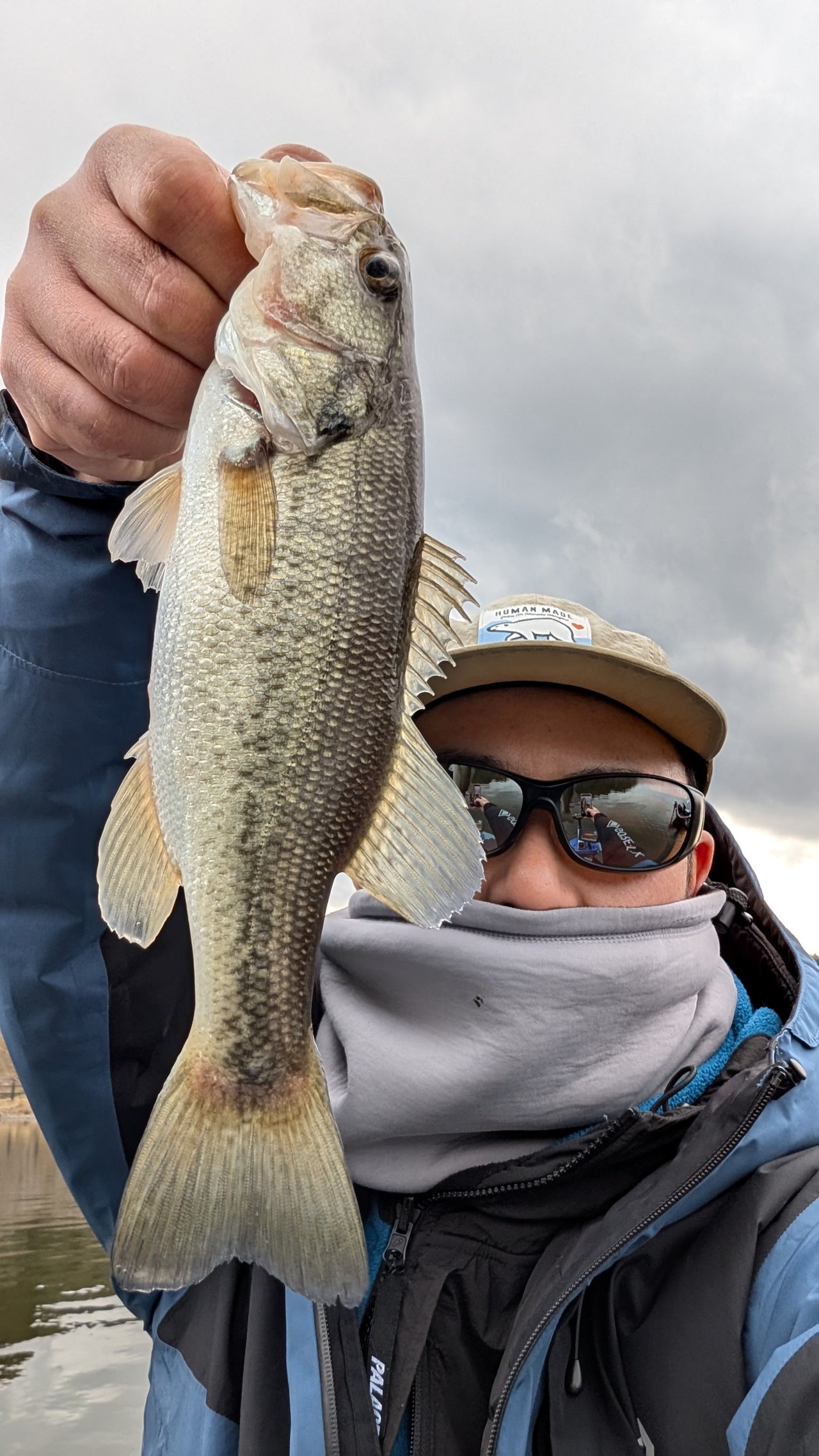行ってきました。ホームグラウンド亀山湖。状況は寒の戻りで先週よりも水温が1℃強低下。2月の水温上昇が速かったのを例年通りに帳尻あってきた感じですね。そんなわけで厳しそうだな―っと思っていたらやっぱり釣れません。カバーと4m前後の変化を狙っていましたがバイト一回とウッドチップが1回「モワン。」となっただけ、、、。白鳥島の2-3mなんかは魚類が沢山いて釣れそうな感じは受けましたがシャッド、カバースキャット、DSといろいろやりますがダメでした。「あー。これはデコるなー。」と思い最後まで延長して頑張っていた終了間際の4時23分ダンダンの2mで起死回生の一発。サイズは小さいけど記憶に残る一匹が釣れてくれました。また行きます。