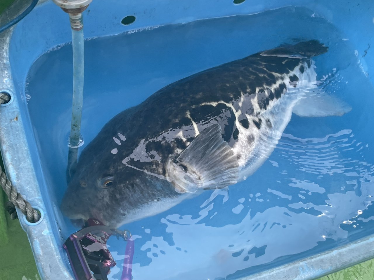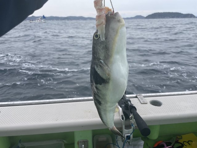 根掛かり?のような重量感で上がってきたのは4kgの白子入りジャンボトラフグ!!!