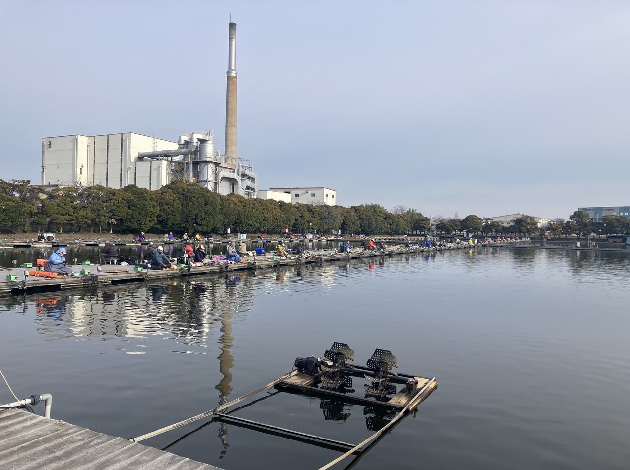 私はいつも単独ですがコノ日は井上さんも単独の事で一緒に3号桟橋の渡り手前のゴルフ場向きに並びで着座。