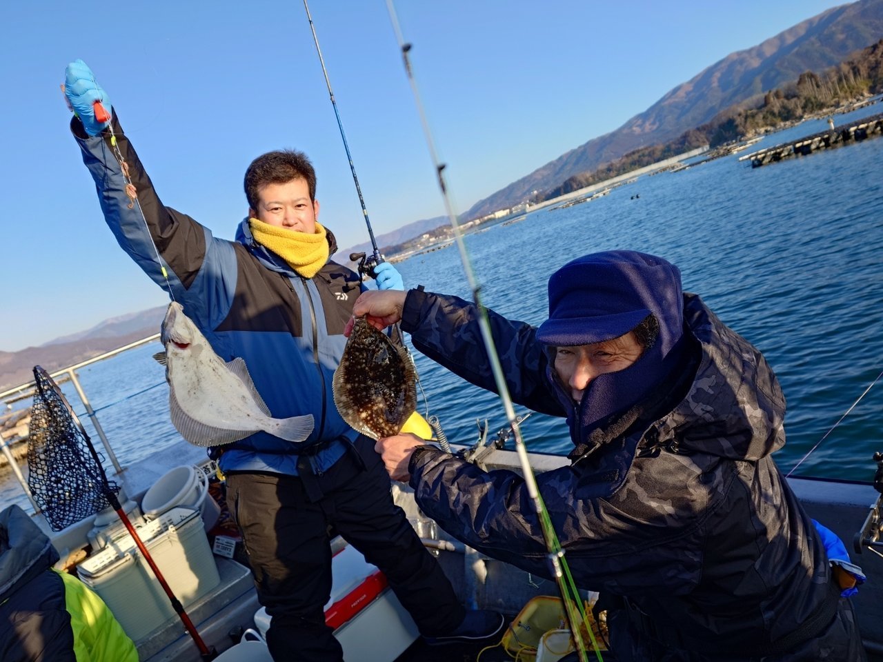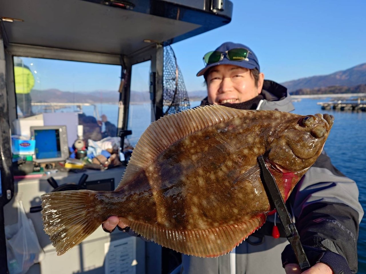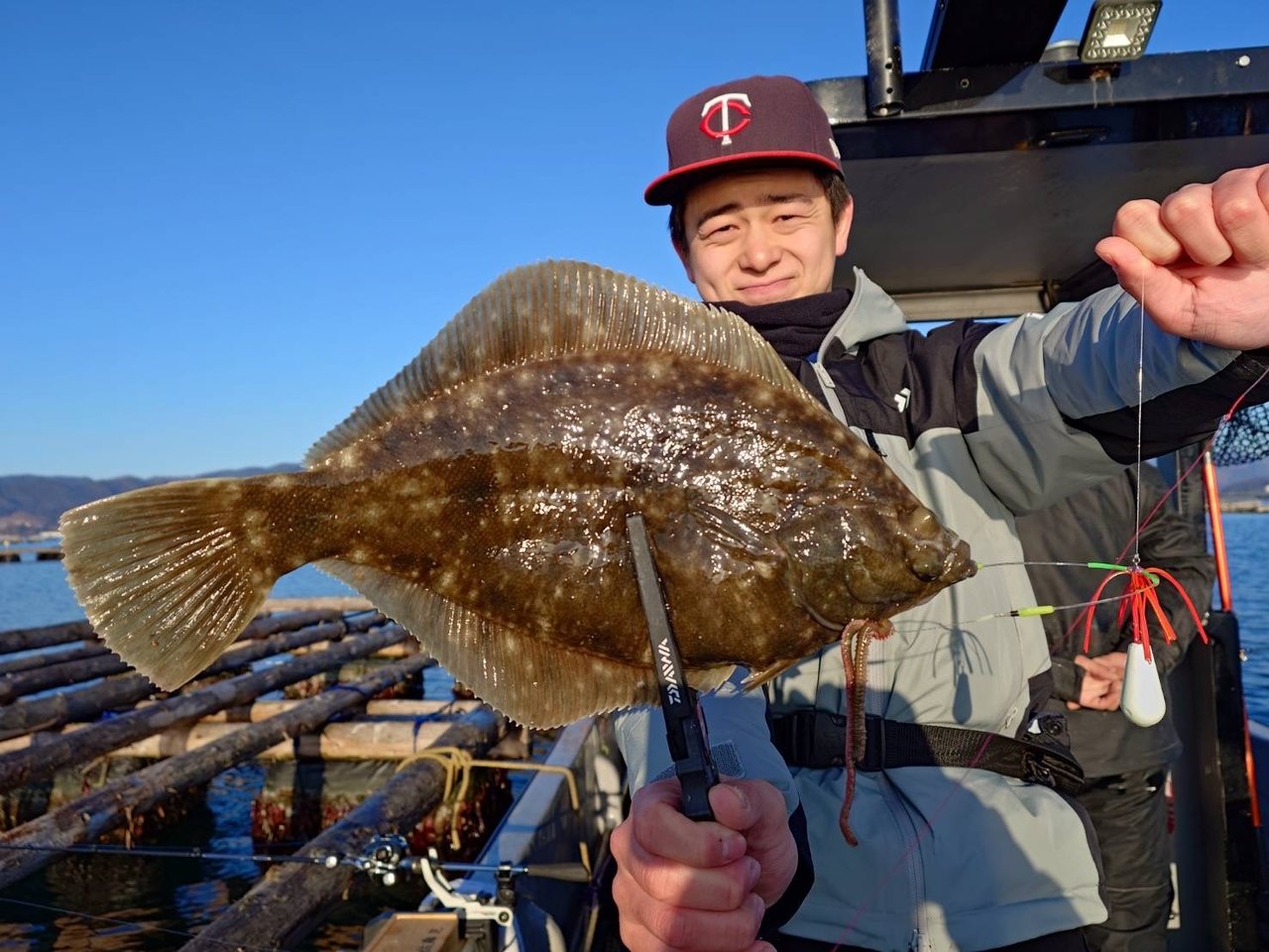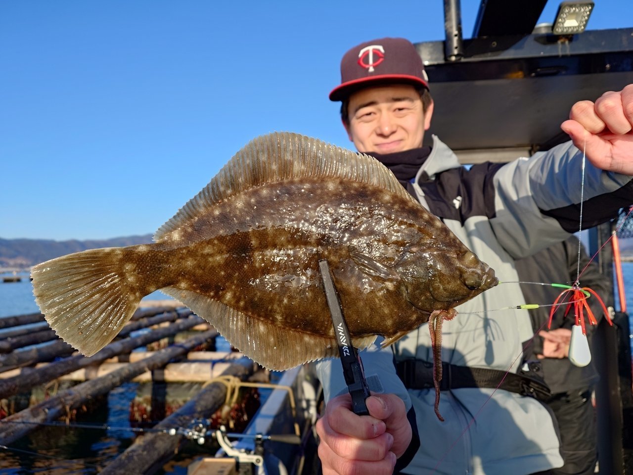 水深は10mくらいでマコガレイの激しい引きが