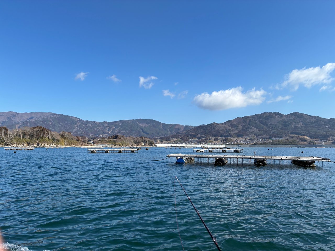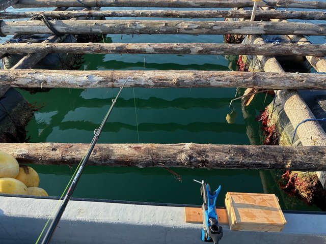 漁港から5分の牡蠣筏に係留しての釣り。