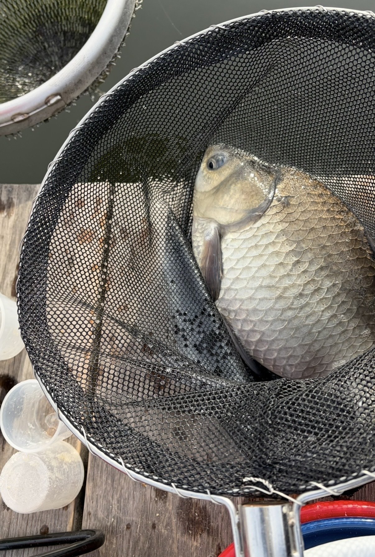 井上さんは私と違いセット釣りも上手なので、竿の長さを変えても終始アタリを貰えていましたが、私は9尺メーターセットを通しましたが14時までの競技時間中は時間1枚の拾い釣りで終わってしまい、久々に16時前まで(計10時間弱)残業しました。