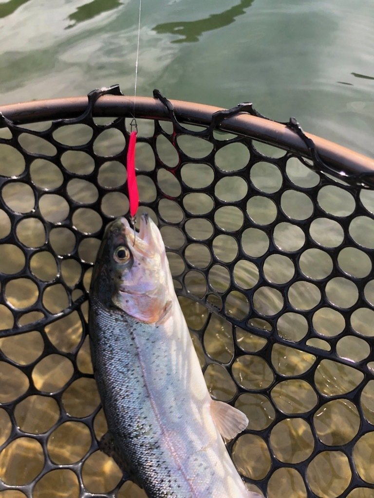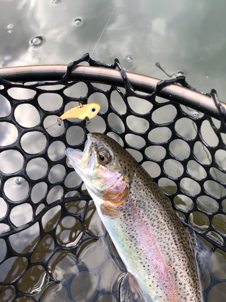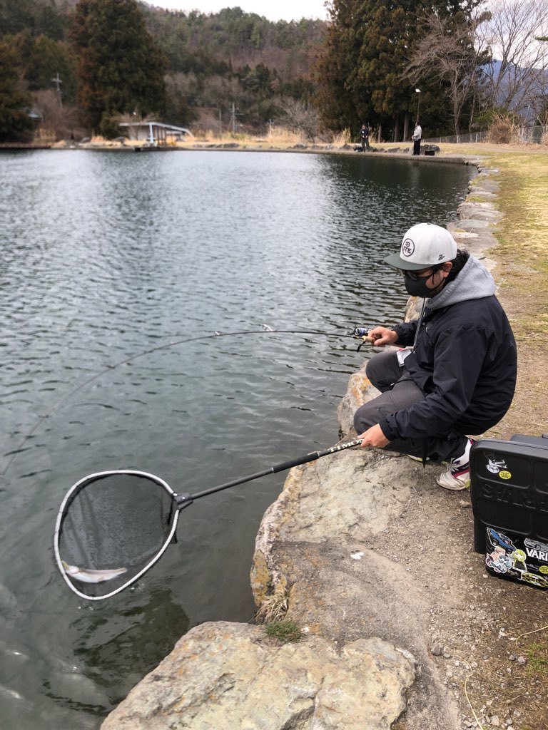 東久留米店吉田です。ホーム釣り場のひとつフィッシュオン鹿留に今年に入りまだ行けていなかったので久しぶりにお邪魔しました。朝の気温は4℃。まだまだ寒いです。水温は9℃。冷え込みで週末から活性が下がり気味のようです。サーチの重めスプーンでは触りのみ。表層に見えているペレット依存の魚をマイクロスプーンでポツポツ。時速3匹。。。ここでお客様が合流。トーナメンターではありませんが上手な方で自分の見つけられていない魚をスプーンでハメ始めたので教えてもらいます。中層やや下目、立て竿、巻き下げ、スライド&ドリフト、時々誘いと難易度高め。スプーンはグラビティ1.35。その後ボトムでメタルバイブ連発!最初は釣れなくても5投くらいしていると魚が集まり連発します。いわゆる耕しです。午前中はクランクもシンキングタイプで深め。浮上系ミノーも深め。午後は少し魚が浮き中層から上でも釣れます。横風が強く、また1投の中で頻繁に晴れたり曇ったりで魚のレンジがコロコロ変わるので釣れても再現性が難しく非常にテクニカルでしたが楽しく練習が出来ました。風があるとまだまだ日中でも寒いので防寒対策と花粉対策は必須です。