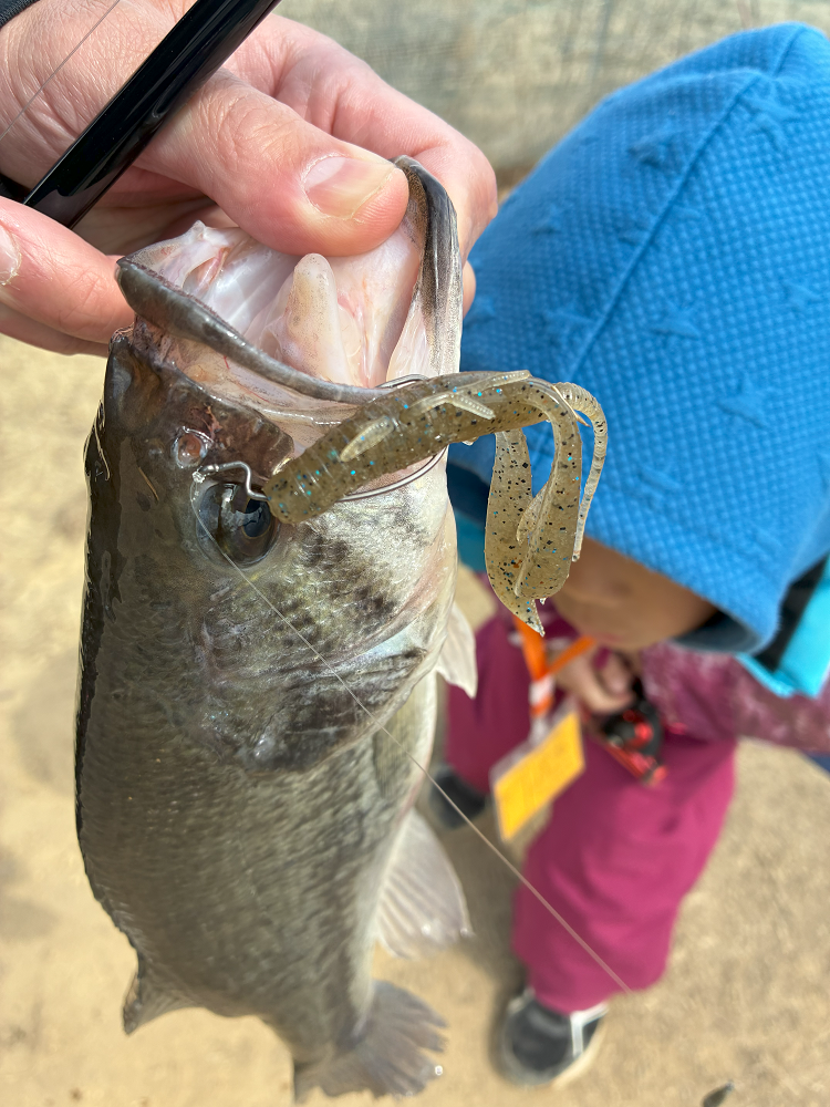 バス池は3つのエリアに分かれており、キャストが安定しない息子と一緒なので、ひらけた2号池から始めました。夕方から本番だと思っていたので、ゆっくりと準備をしてワームはこのように動かすんだよ~と説明しているとヒット!まさかこの時間で釣れるとは!?プラグで釣りたい息子はしばらくお気に入りのグランダールアー「スケルトンミノー」を投げていると、それまたヒット!1時間位で3匹釣った息子は10匹釣るまで帰らない宣言をした為ワームの釣りも教えると15時までに10匹達成♪まだまだ釣りたい息子は17時まで頑張り20匹釣る事ができました!いろいろなルアーやプラグで釣ることができ大満足な一日でした!午後気温が下がってからはゆっくりと狙えるダウンショットが安定して釣れていました。定期的にバスを放流されているようで魚影はかなり濃い様子でした。また時間を見つけていきたいと思いました。