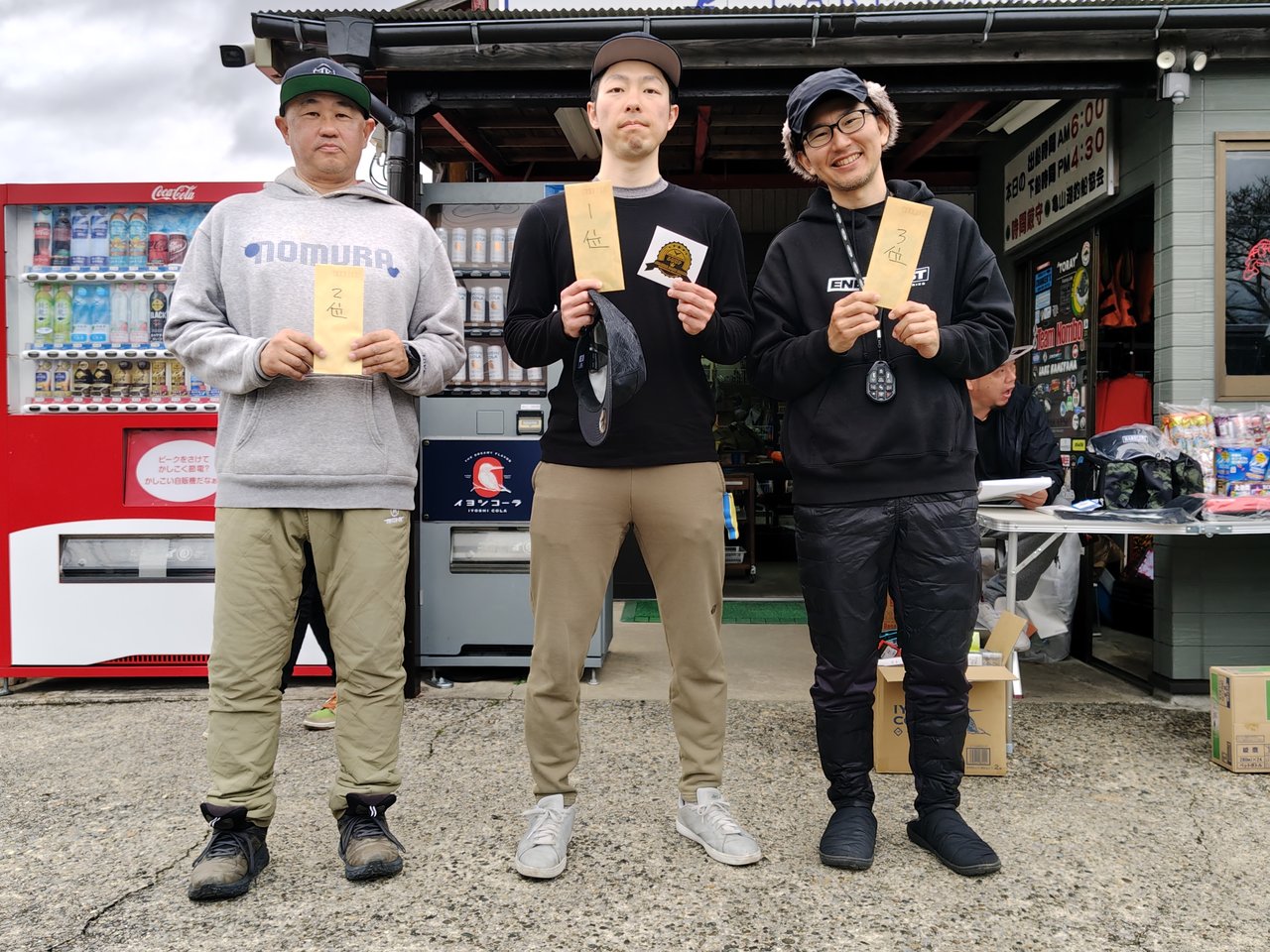 優勝は53cm2500gオーバーのビッグフィッシュをキャッチしたSHOHEIさん!お見事です!2位は朝一に同じエリアでナイスフィッシュを釣り上げた根津さん、3位は朝一に桟橋でお互いデコを誓い合ったランチアさん。が、2人とも釣れたので2人とも誓いを破棄した模様です(笑)