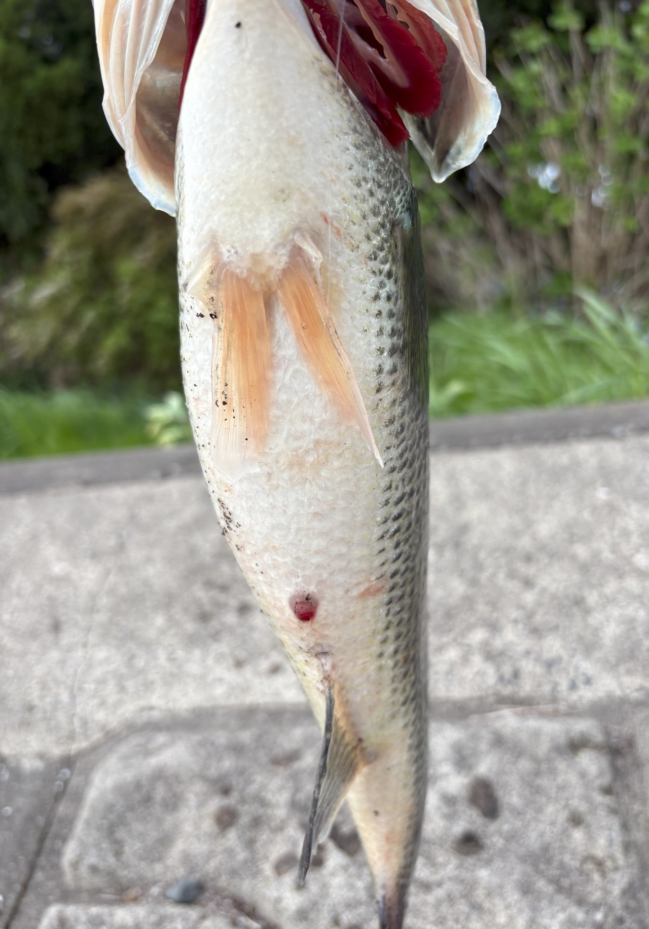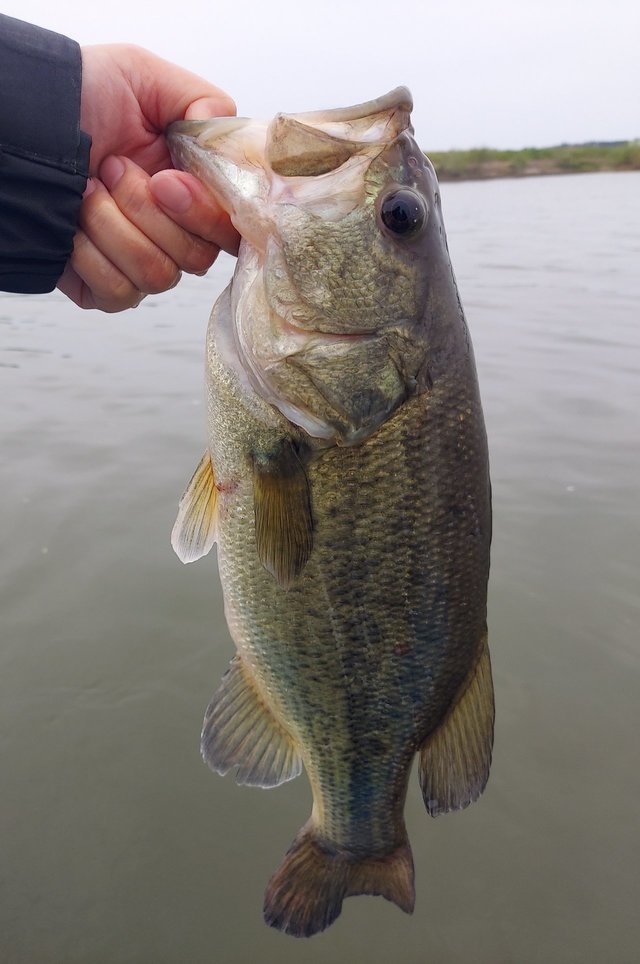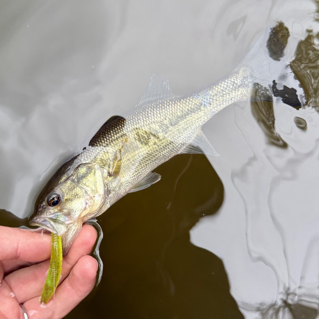 一箇所目は濁ってバスも見えずノーバイト、二箇所目でようやく1匹目釣れてからは数匹釣れて4キャッチ!