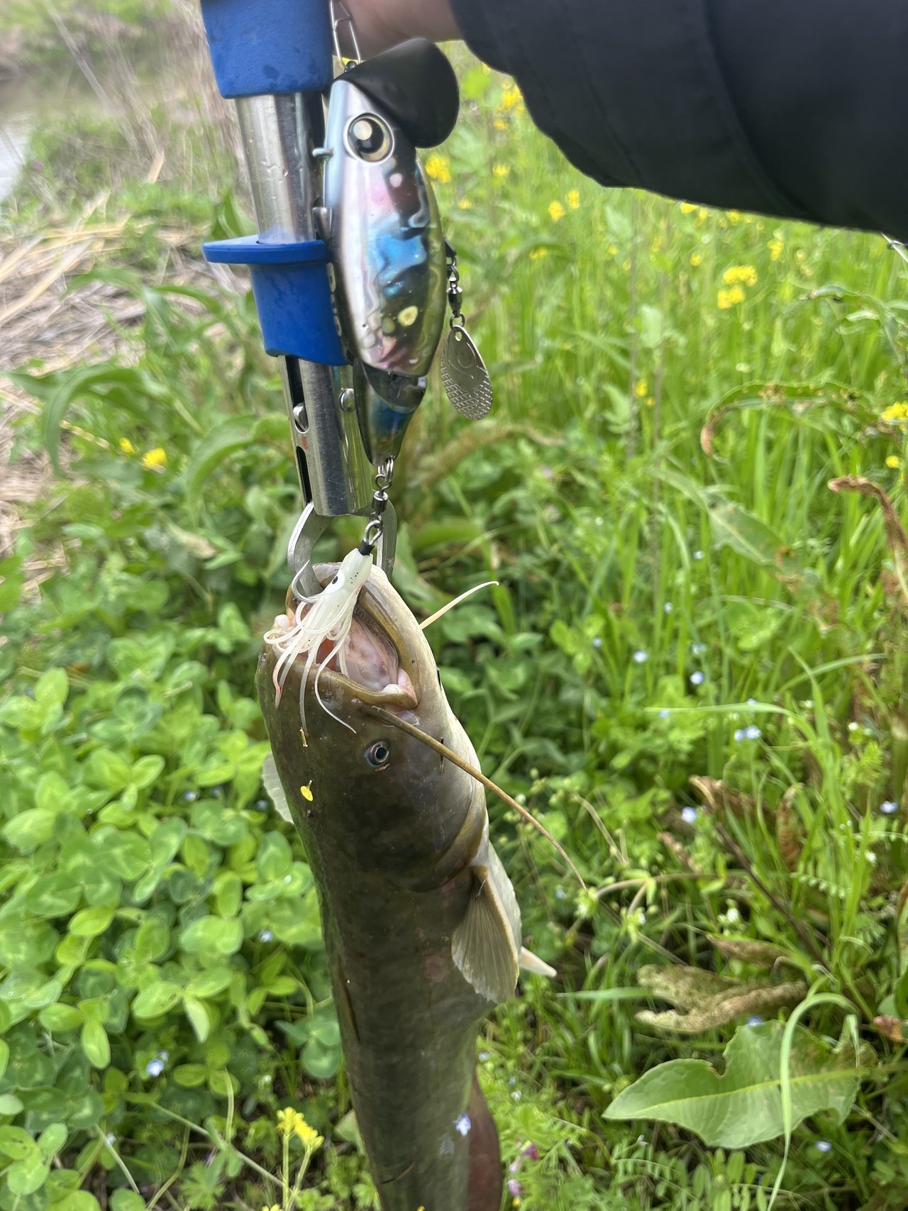 そろそろテナガエビどうかな~?と思い店舗近隣調査行ってまいりました!昨年は4月中旬頃にはこちらのポイントでたくさん釣れたので、少し早いですが様子見へ。週末という事もあり、橋の下には多くのテナガエビアングラーたちが!1時間半しかいられなかったので1匹でしたが、お隣のファミリーはポツポツ釣れているようでした(^▽^)前日の大雨の影響もあるのか活性は低めで、あちこち仕掛けを入れ直して探すよりも、いかにもエビの良そうな隙間に仕掛けをおいてじーーーーっくり待つ。方が良さそうでした。(じ―――っくり待っても合わせ早くてバラし多々)1本手持ち、1本置き竿してもよかったかな?