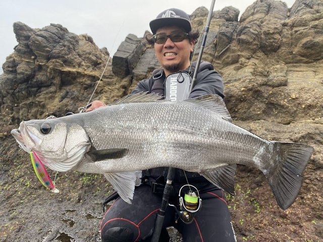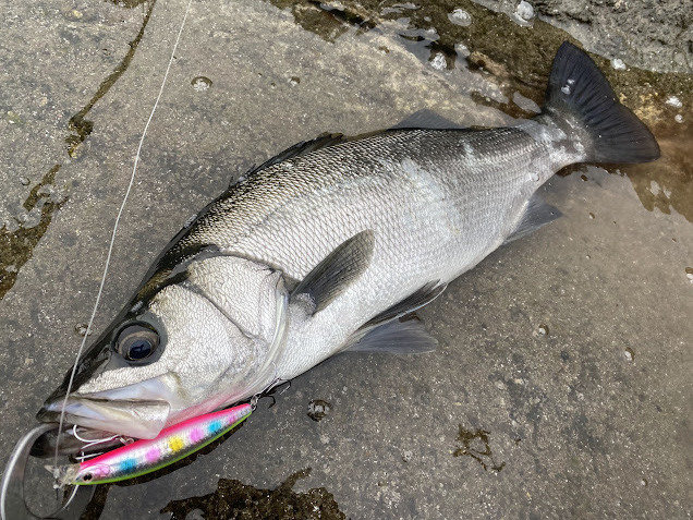 東京から釣りに来た友人のガイドを兼ねたヒラスズキ釣行。しかし予報は波1m。サラシは薄くテクニカルな状況。潮波だよりなウネリのため潮位と潮の向きを考えながらランガン。薄いサラシの中、あの手この手を試しているとヒラスズキの反応はポツポツ。特にジャーキングに対しての反応が良かったです。喰いが浅くバラシ多発でしたが、レギュラーサイズを何とか複数本キャッチ出来ました。サラシが薄い分、穏やかで心地のいい磯を満喫出来ました♪