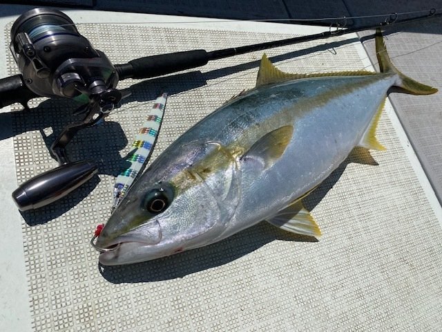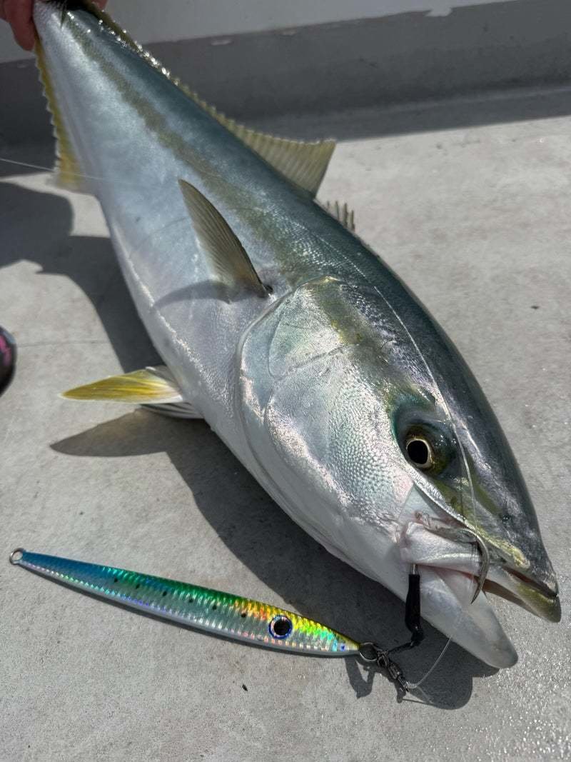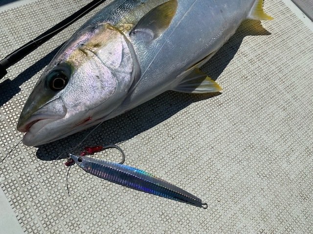 今回は七里ヶ曽根方面へ。ベイトのイワシが戻ってきているようでナブラも多発する春らしい雰囲気。しかしベタ凪で漁船、遊漁船で賑わっておりルアーへの反応はイマイチ。ナブラもすぐに沈んでしまい射程圏内は中々入らず。潮替わりのタイミングに鳥の動きが活発になり時合到来。ヤズバイトも多い中、突然のヒラマサのバイトが到来。船中10キロ前半サイズが出る中、自分も7キロほどのサイズをキャッチ。そして次の流しに特大バイト!ヒットの瞬間ドラグが出され大型を確信しましたが無念のバラシ。その後は沈黙したまにヤズがポツポツ。夕方まで粘っていただきましたが、目立った釣果は無く終了。ボイルしている魚体は明らかにデカい!もうすぐ春爆の予感です!