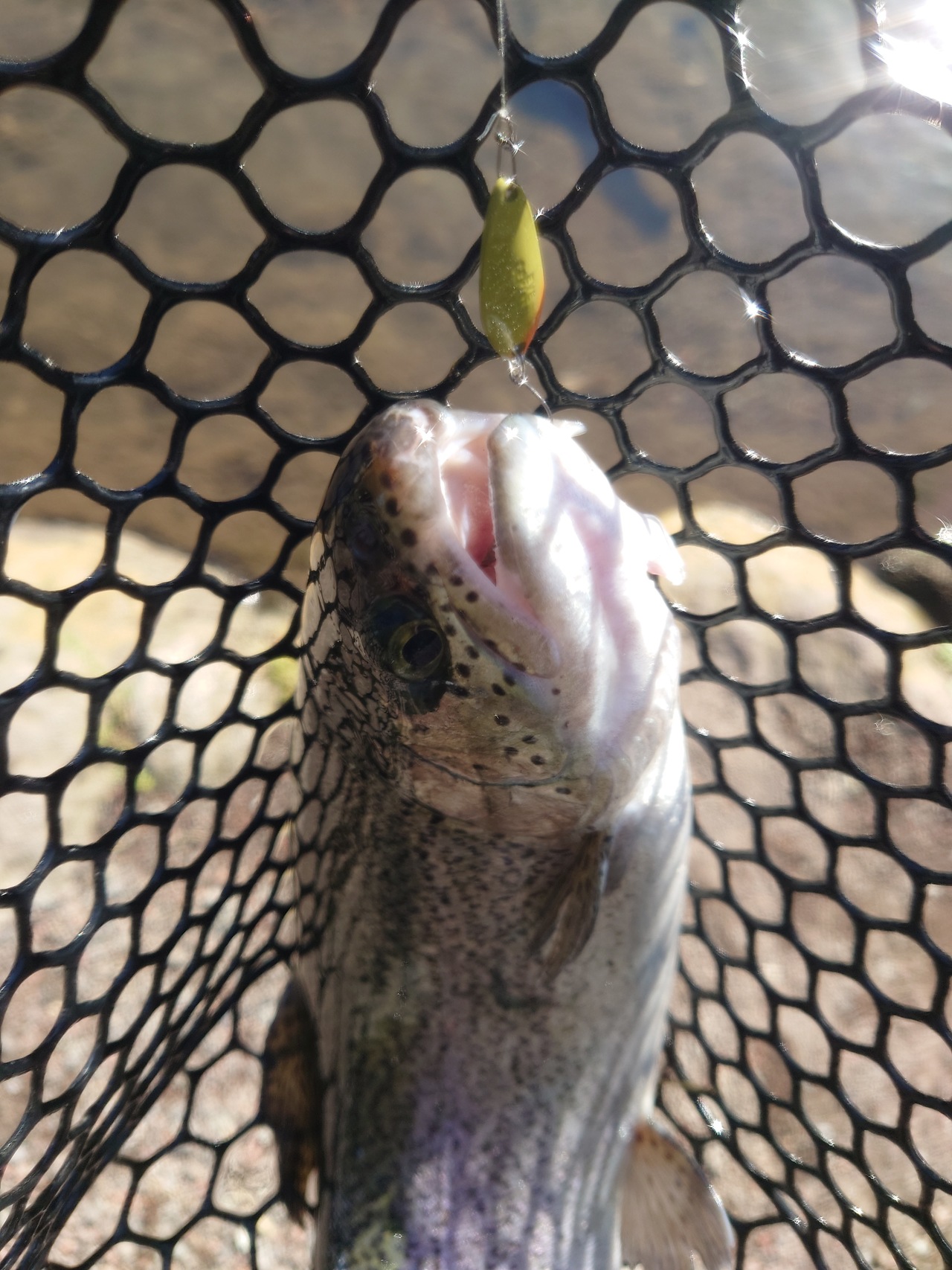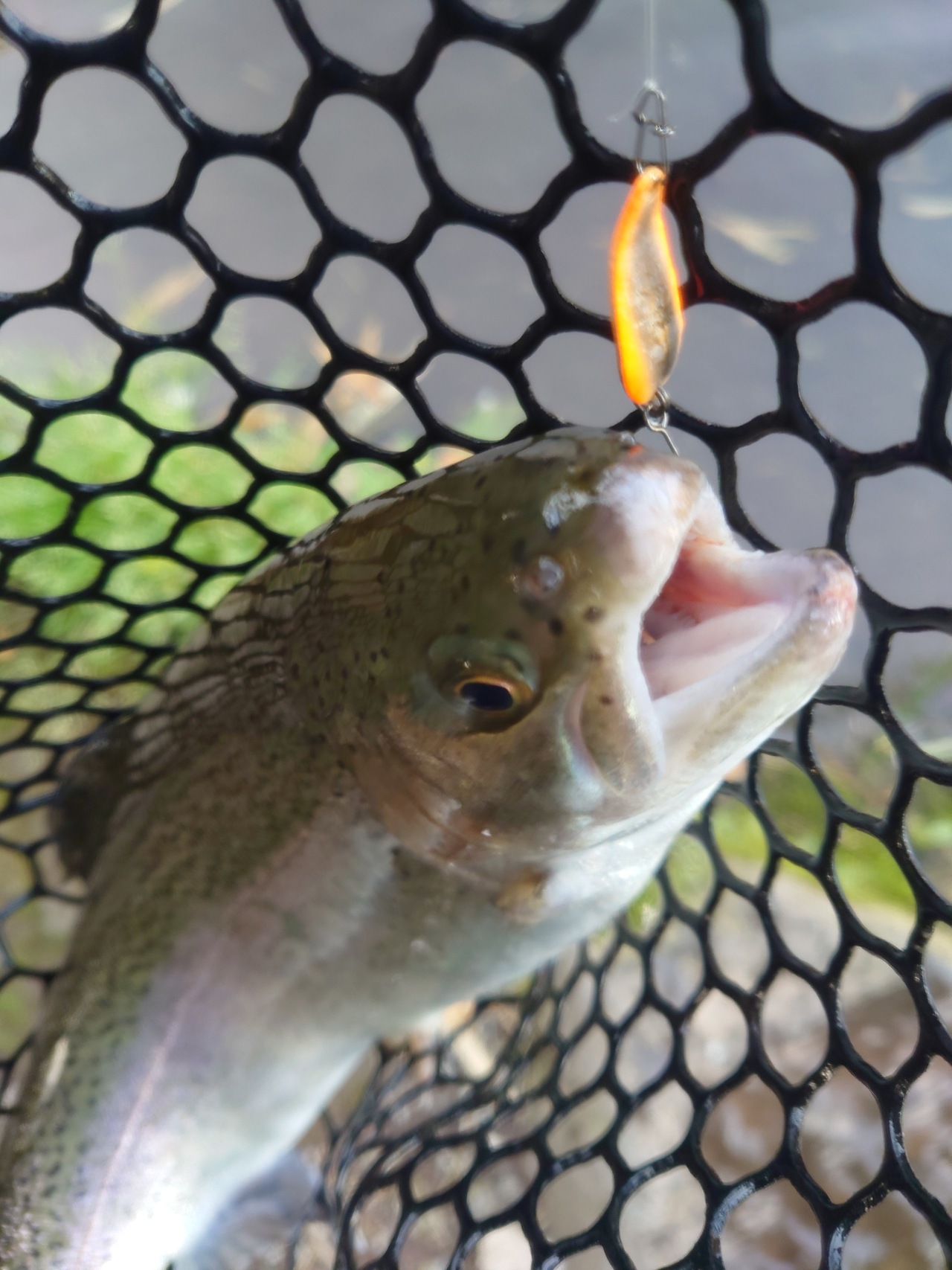 今回は裾野フィッシングパーク様へお邪魔いたしました。2日前も釣りをしていましたがまだまだ釣りたいと思い足を運びましたが思ったより釣れずまあまあ苦戦でした。いつもより水の濁りが少ないものの魚が見えなかったり…。風もあり難しいなか黄色/ゴールドのスプーンで連続ヒットするも切れてしまいその後は続かずでした。場所を移動したり夕方のトップを楽しみながらポツポツ釣り終了になったしまいました。
