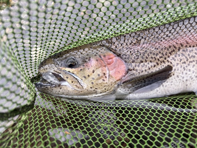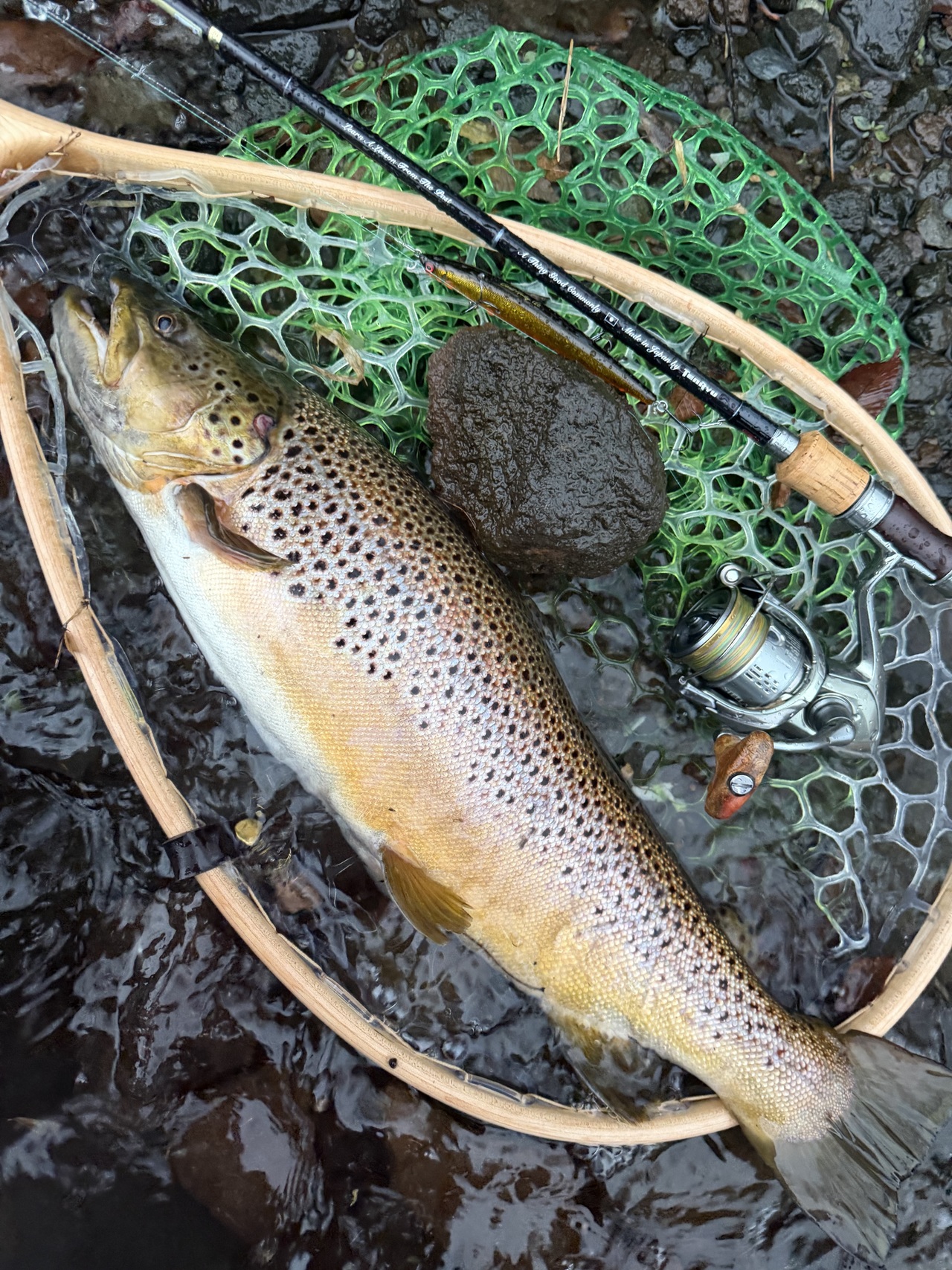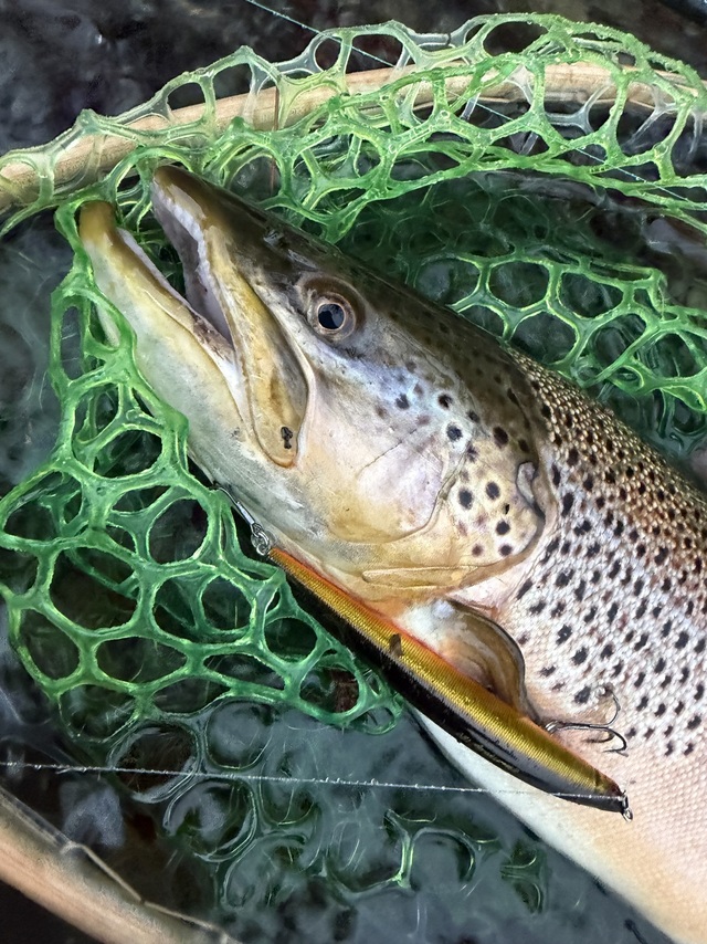 何度も跳ねた後の強烈な突進になんとか耐え、無事ネットインしたのは厳つい顔した62センチのブラウントラウトでした^_^