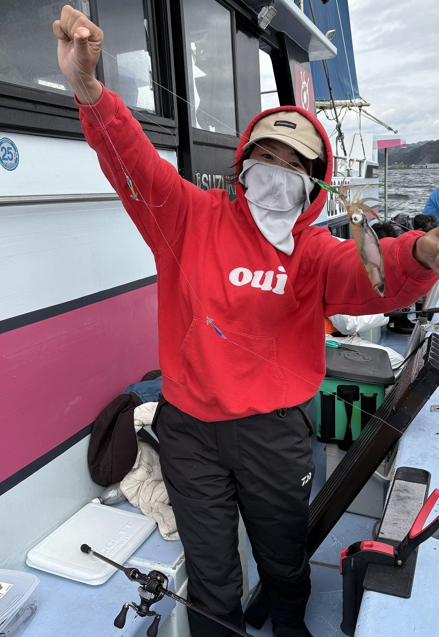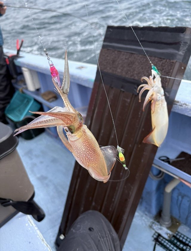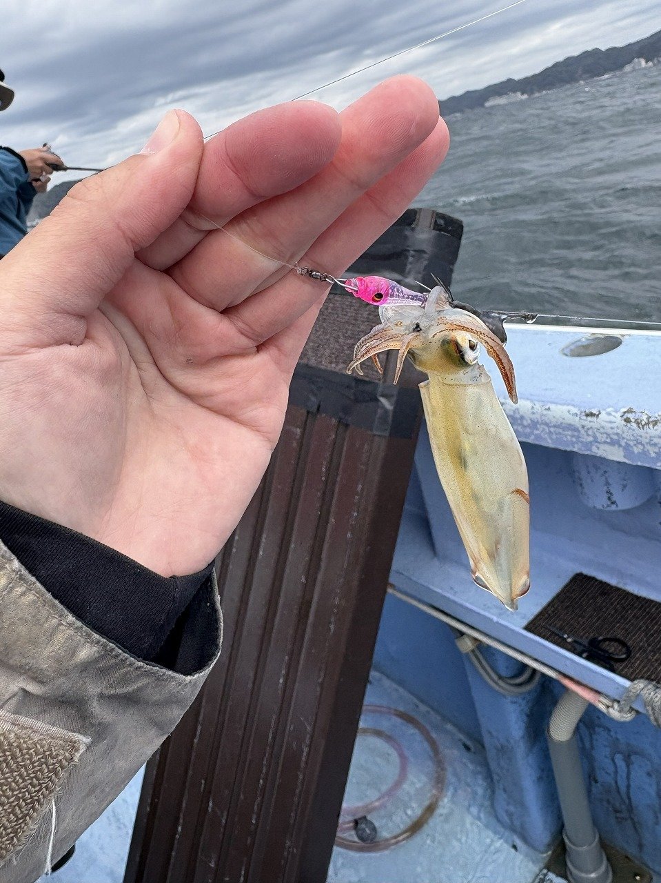 小湊寿々木丸さんに乗船し、今シーズン初マルイカ行ってきました!前日までは70杯越えとかなり期待大の釣果!!気合バリバリで行きましたが…安定の「昨日までよかったのに…」が発動。イカも小さい!アタリも小さい!風も強い!難易度高めの1日でしたが、穂先が震えるアタリをとらえた1杯は格別です。今回は惑わされること無く空あげほとんどなし。道具を全てお貸ししてマルイカ初挑戦のお客様もなんと7杯!しかも小さなイカのノリ感しっかりとらえ、取り込みのバラシもなくお見事でした。ピンク、イエロー(黄緑っぽい黄色)、ギョクロがこの日のアタリスッテ。仕掛けはダイワのスペクトロンセンサーを使用しました。糸グセつかず、トラブル無く扱いやすかったです。(次は3号で仕掛け作ってみようと思います。)マルイカ、やっぱり楽しい。女性アングラー様にも人気の釣り物です!今年はアタリ年?興味のある方は今がチャンスかもしれませんよ♪