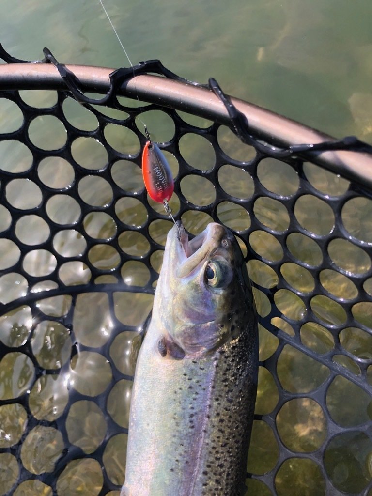 東久留米店吉田です。日曜日の中津カップ前にお客様とプラに行ってきました!ポンドは薄くダムからの濁りあり。漁場整備で手前の駆け上がりの感じが変わっていました。開始からスプーンで好調!放流もあり気づいたら午前中はスプーンのみでした。午後からプラグ解禁。クランク、ボトム、トップ、ミノーとアジャストすればどれも好調で逆に困ってしまいました笑。久しぶりの終日中津で楽しく練習ができました!
