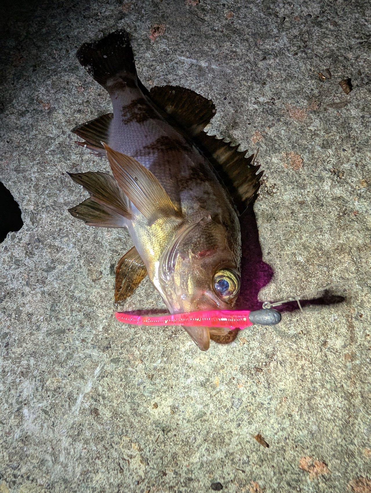 私は0.85gのジグ単で狙って小さいですが1匹キャッチできました。