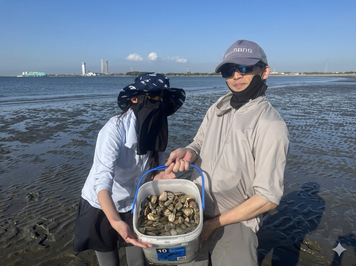 みんな大好き潮干狩りのシーズンということで、千葉稲毛海岸店スタッフの佐藤さんと家族の皆様、総勢5名で「富津海岸潮干狩り場」に行ってきました。