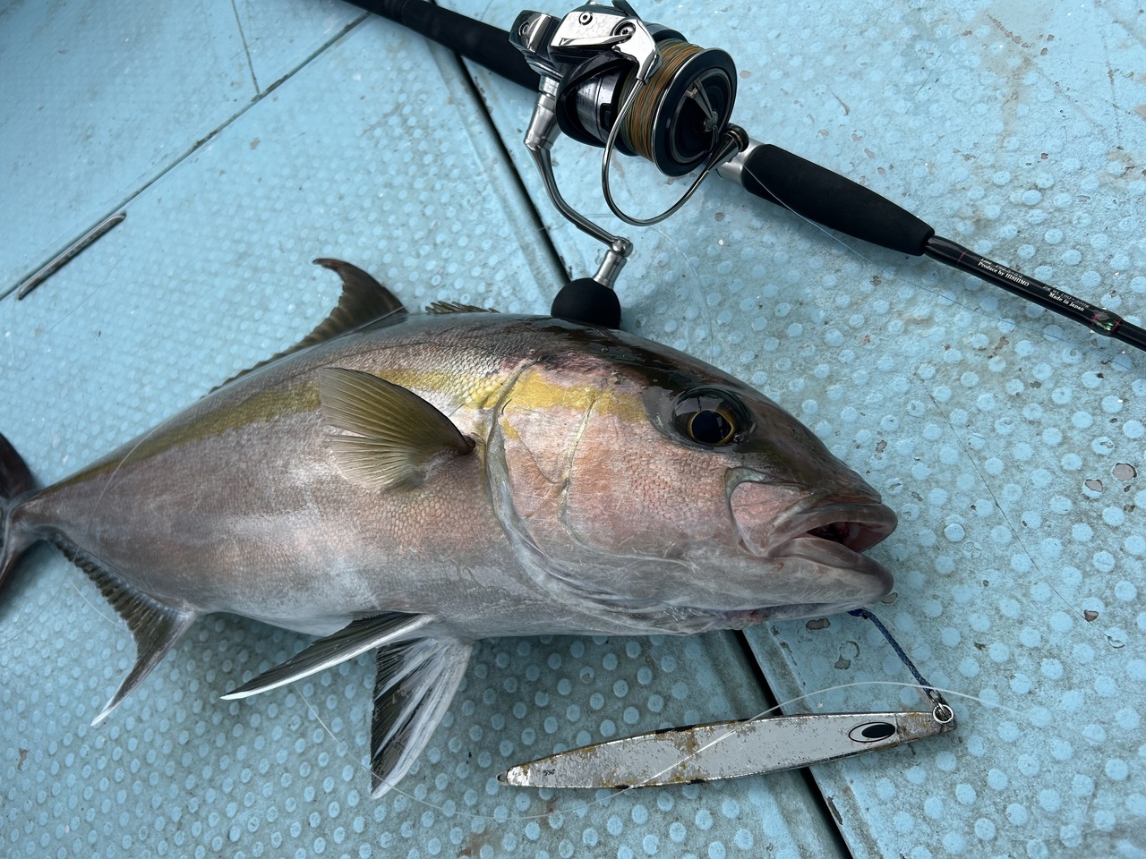 いつもは、シーフロアやウロコをメインに使ってますが、ここまで鉄が刺さるとは、やっぱりワンピッチのカンパチジギングはネイチャーボーイズさんですね!