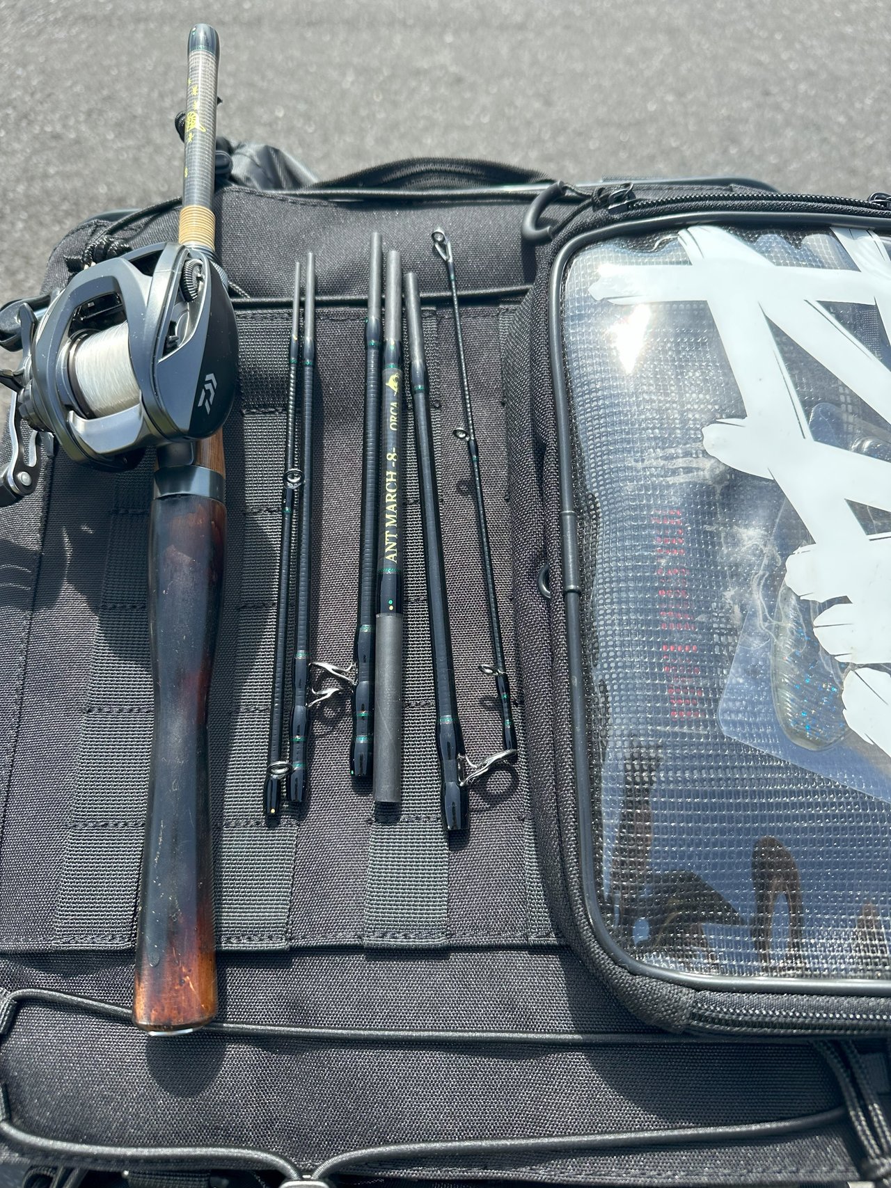 今回持っていったロッドは仕舞寸法20cmと驚異的な短さになるアントマーチというロッドでつなげば4.5ftになり、短いながらも12ポンドピーコックバスとのやり取りもできるなかなか面白いロッドです。