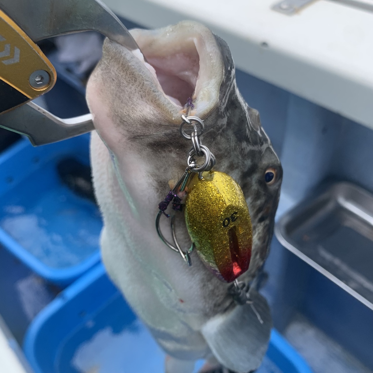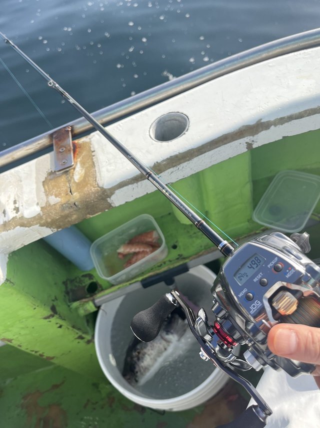 水深は30m後半〜50m前後と去年に比べると比較的浅かったですが、錘は派手目な物が良かったです!