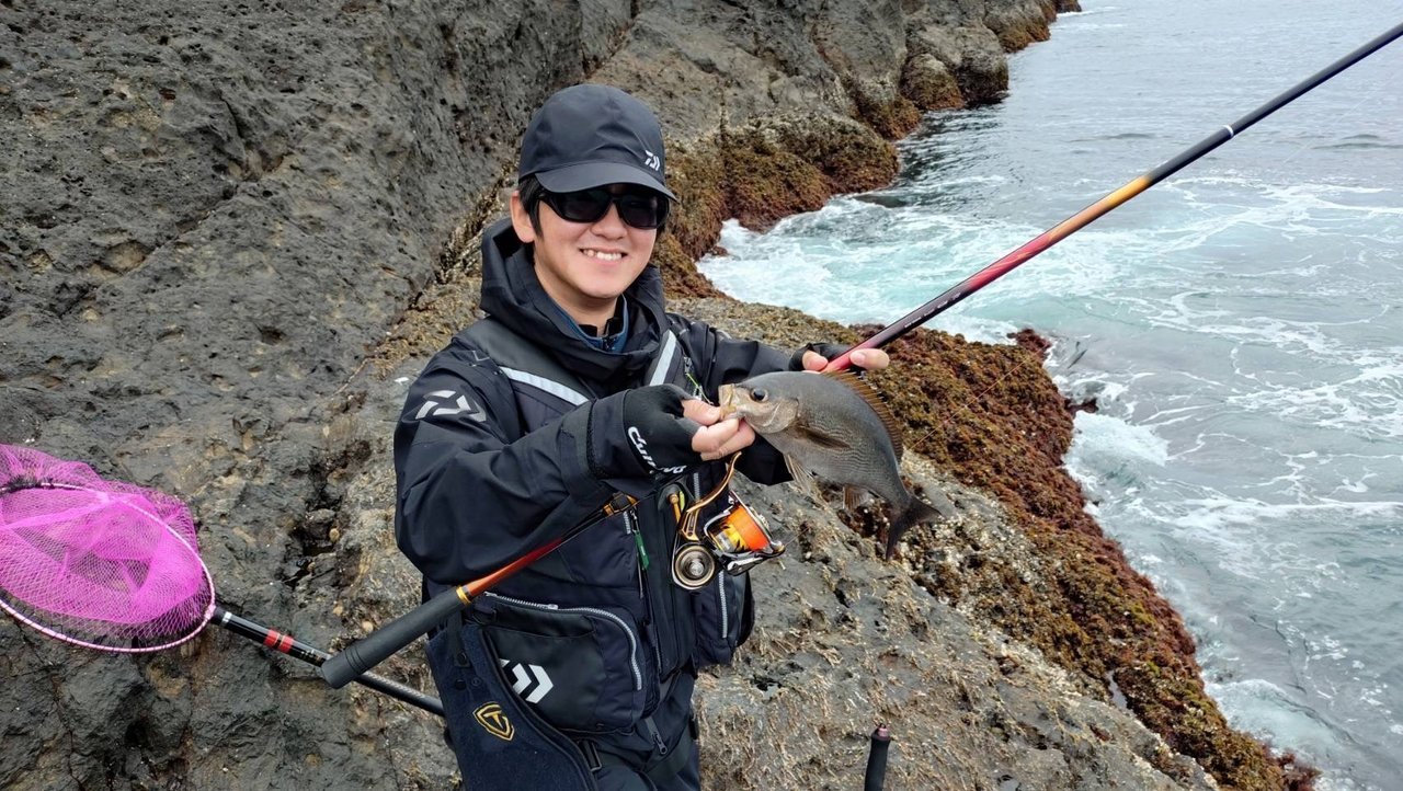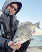 フグに弄ばれている中、中山君の竿にヒット!ベローズスティックでクロダイをナイスキャッチ!