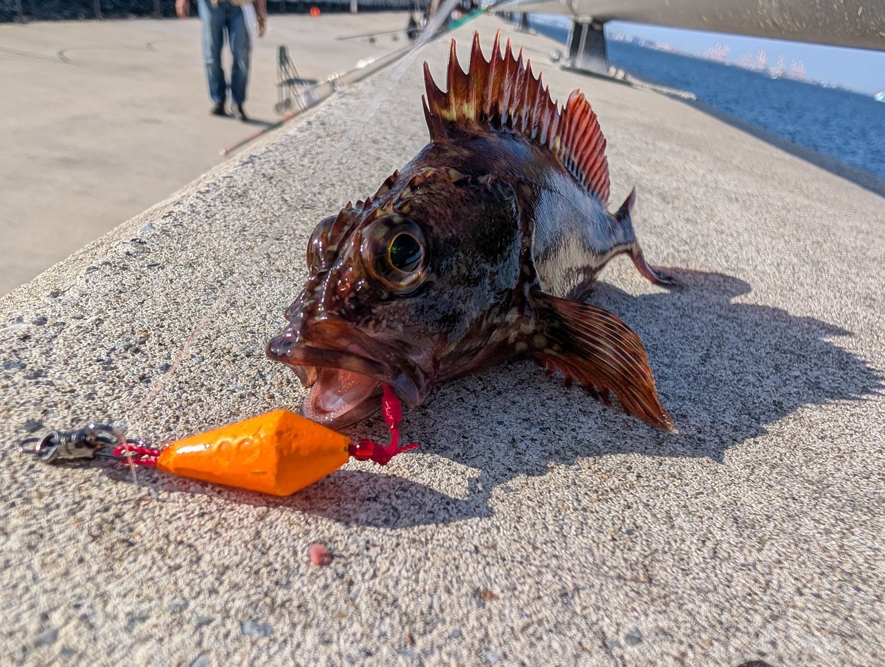 仕掛けは大好きなエサヘッド5gと青イソメ。手軽で当たりも分かりやすく根掛かりしにくい✨