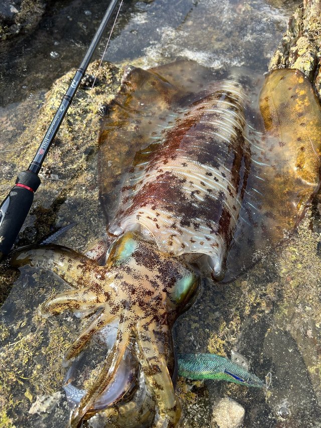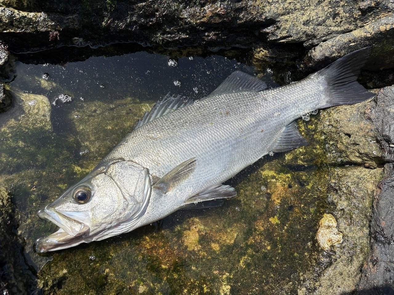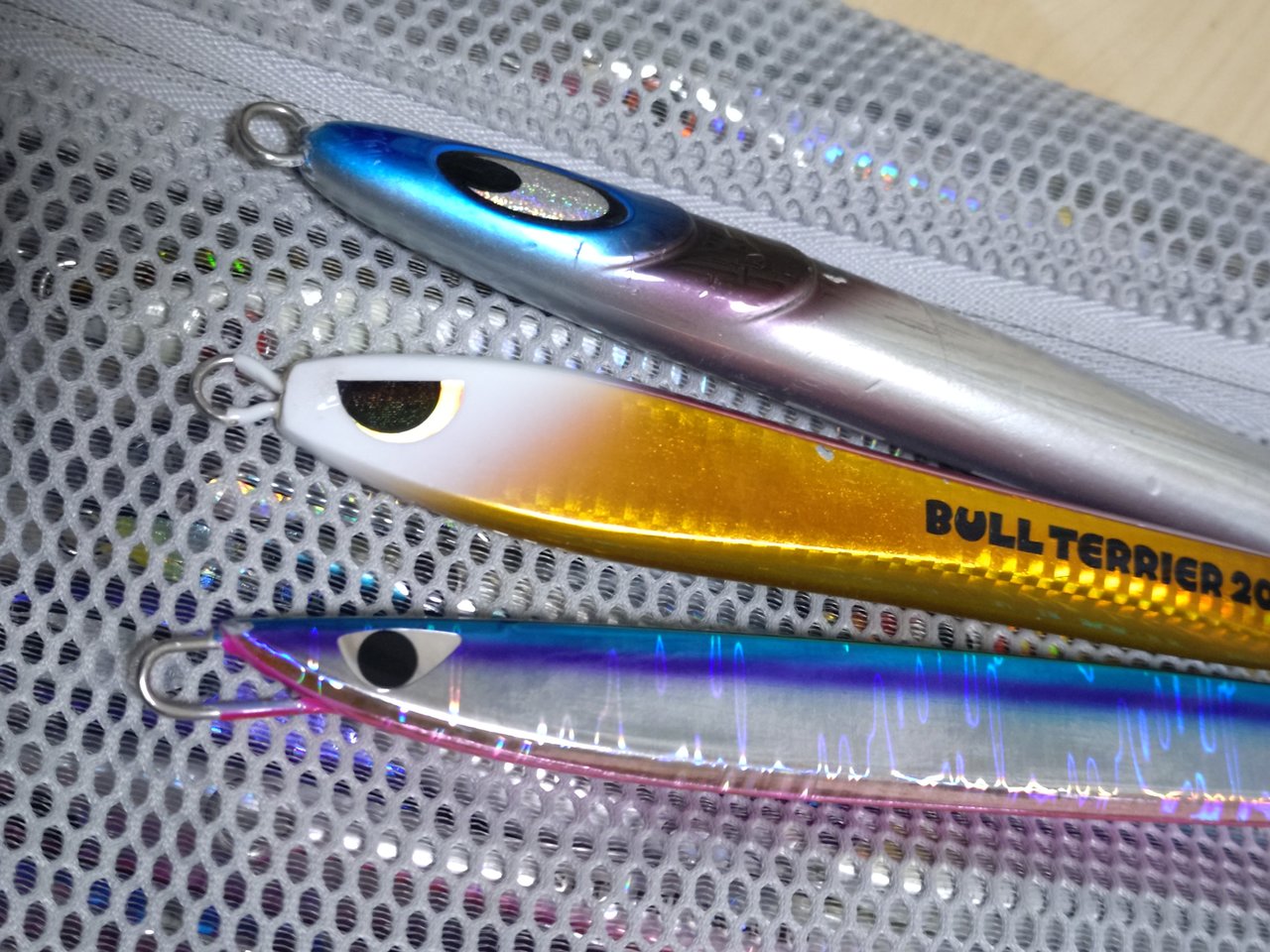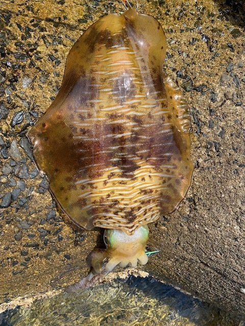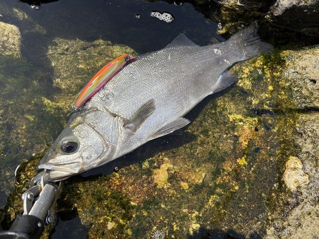 二回ヒットあり、一匹めはネットイン後暴れて脱走…二匹めは姿見た瞬間フックアウトでキャッチならず、潮位下がり根掛かり危険水位になったので終了しました。