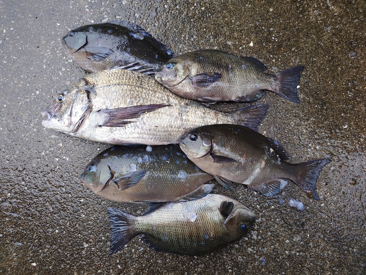 開始からしばらくはノーバイト、夕マヅメ前に明確なアタリあるも乗らず…後半にフォールでバイトありフッキングも決まったぜー!と、思った瞬間なんか引きに違和感ありクロダイじゃない?