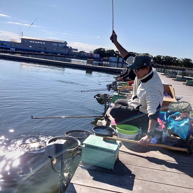 さて実釣スタート。噂の通りなかなか触りすら出ず苦戦。ようやく1枚。昼飯を挟み再スタート。前半全くうまくいかなかったので、ハリスを伸ばし、浮子を変えエサも微調整。粒戦から粒戦細粒へ。これが功を奏したのか連発。調子上がってきた!