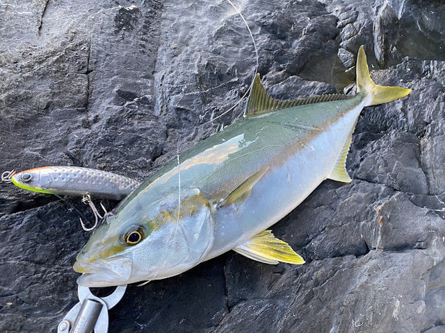 対馬釣行3日目。フェリーの時間もあるで午前勝負。状況の良かった1日目の朝と同じポイントにエントリー!2日間の時化は終わりベタ凪状態。朝マズメ1投目から反応があるもやはりノラない。爆風だと使いずらかったラフライド165Fに変更して何とかヒット!ヒラゴサイズですが何とかキャッチ!その後たまにバイトはあるも、食い込みが浅くノラない。答えをさがしてルアーをローテンションしていくと、手持ちのルアーの中ではダイブスターが反応。軽くツイばんで反転するバイトが多かったので、フックをトレブルからツインのアシストに変更。するとフッキングはしないもののルアーが持ち込んで若干沈むように。そして潮止まり前のタイミング。モワっとした静かなバイトでしたが遂にフッキング!デカい!しかし痛恨のラインブレイク。撃沈です(泣)その後ポイント移動をするも反応なし。3日間の対馬釣行終了。またリベンジします!