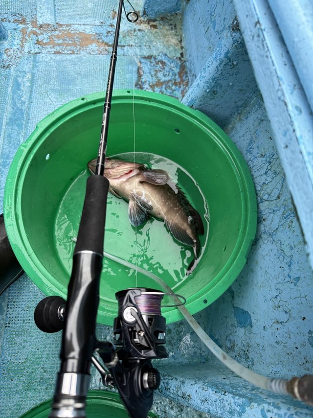 少し前に別組がすでに実釣会を行っておりマハタメインで釣れていたので底中心に狙ってみようと開始して1投目の3シャクリ目で明確なアタリ!?