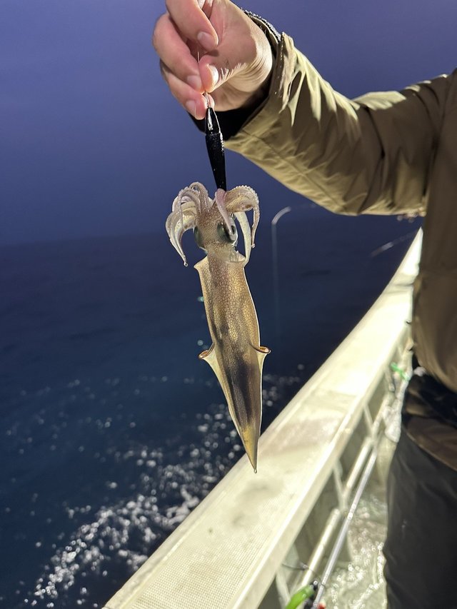 昼の青物ジギングから約3時間の休憩を挟んだのち再度慶漁丸に乗船し今度はヤリイカ狙いの夜焚きイカメタル便です(笑)