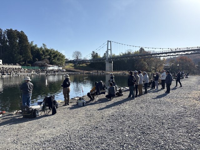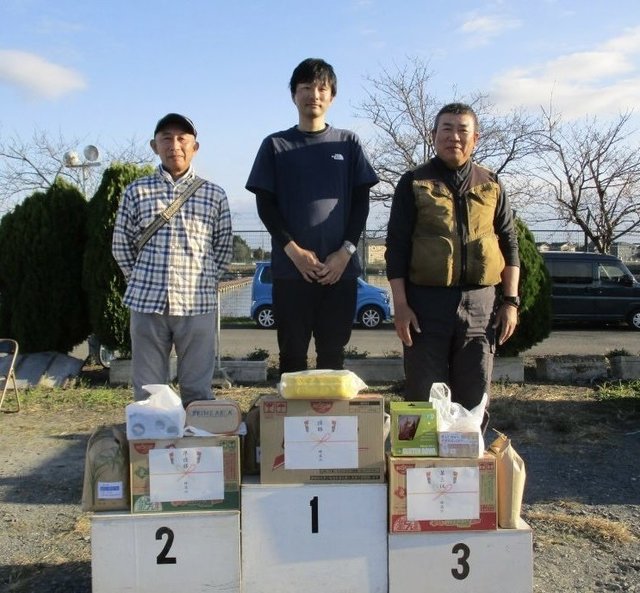 東久留米店井上です。埼玉県神扇池に11月29日(土)第31回市民釣り大会に参加してきました。現着すると天気予報より強い風が吹いて、水面は波立っていました。釣り座はくじ引きです。幸いにも追い風となる中央桟橋158番です。釣り方は、先日の試釣でいい感じの動きをしていた9尺チョーチンセットから入ります。ただ前日に放流があったので様子はかなり変わっていると思います。競技は7:00から14:00の勝負です。エサ打ち1時間が経ち浮子はノーピク。周りの方も厳しそうでしたが、ポツポツ竿は曲がり出してきました。エサ打ち1.5時間でようやくサワリが出始め、2時間でアタリが出ましたが、2枚連続でスレ‥それからバラケを微調整してファーストヒットで一安心。それからはへらが動き出したようで、アタリを出すことができました。12時過ぎで16枚釣れて、ルールではフラシ10キロ交換なので、フラシ交換をします。その後は風が向かい風になり、流れが出てしまいましたが、14時までに23枚、11.6キロ釣れて、優勝することができました。また機会があれば参加させていただきます。