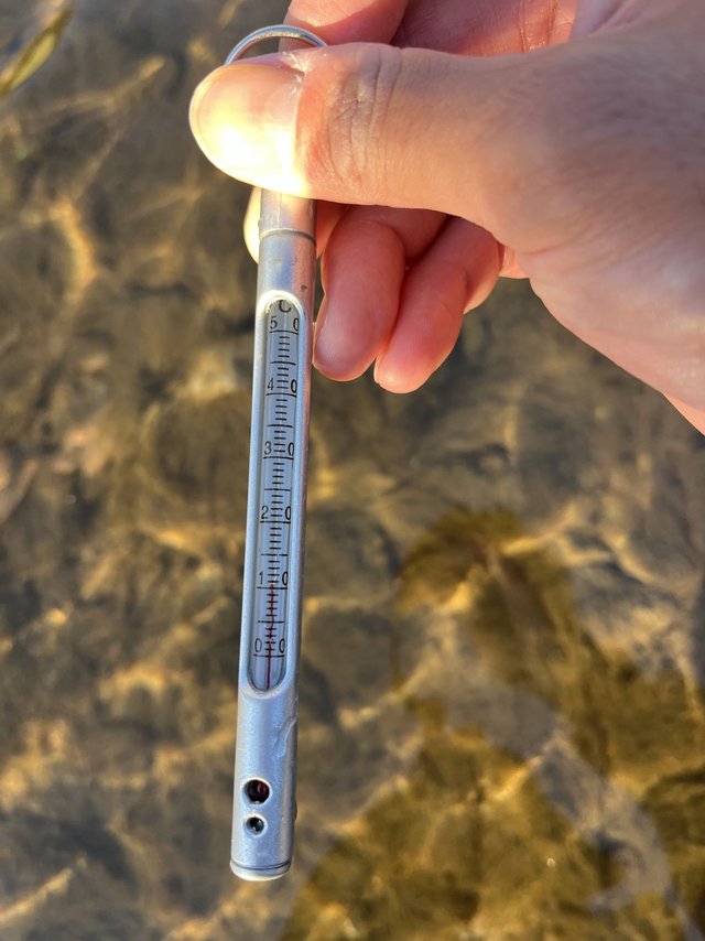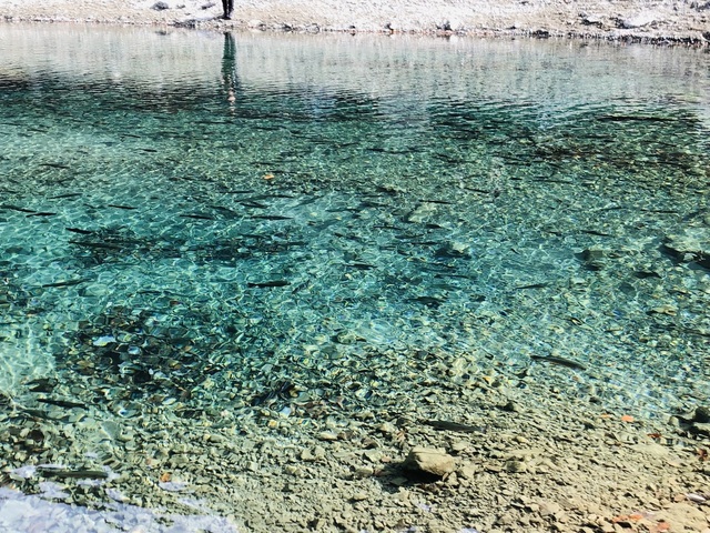 水温は11℃、上流の橋梁工事の若干の濁りが入っており魚影が捉えづらいです。