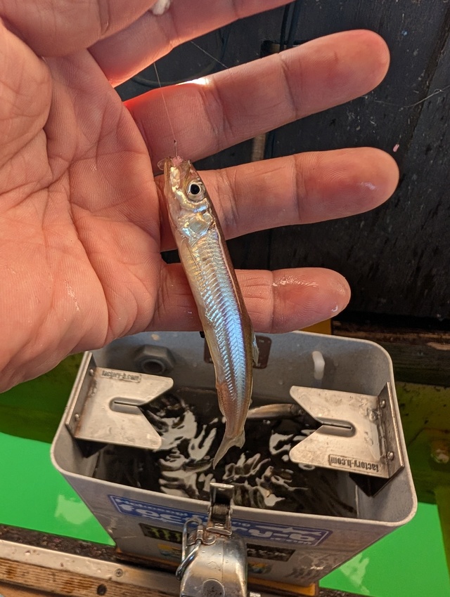 市原16号店近郊のオリジナルメーカー市原海釣り公園にてコノシロが再度釣れ出し、泳がせにてシーバスが釣れていることで実釣してみました。ゆっくり13時半より釣り開始、開始後まもなくは無反応でしたが、1時間すると明らかに群れが回ってきました。待望の1匹目が掛かったあとから更に群れが濃くなり途中からは全面コノシロ絨毯。少し投げて落としている段階でも針掛かりしてしまう状態となったためコノシロ釣りは終了。途中からはシーバスに切り替えましたが、自分は無反応で終了。周りのアングラーは泳がせ、ルアーにて良型のシーバスがポツポツ釣れていました。