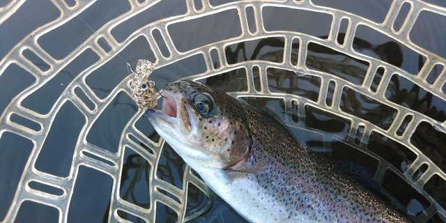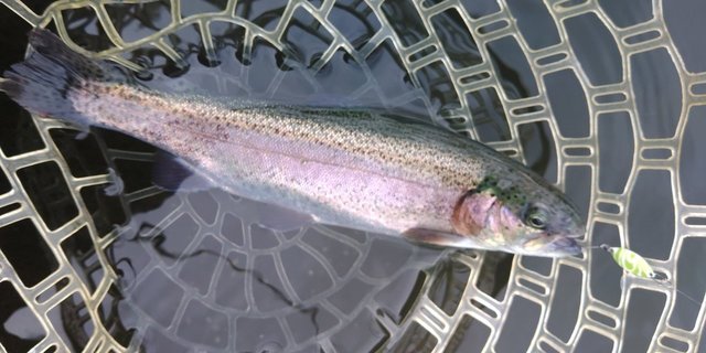 朝霞ガーデンさんに行きました。午前中は風も吹かず暖かい予報でしたが曇り気味でしたので少し肌寒い中、ルアー池で釣り開始、魚は浮き気味マイクロスプーンの表層巻きが反応良くカラーローテと少し層を変えるとコンスタントにアタリが出る日でした。
