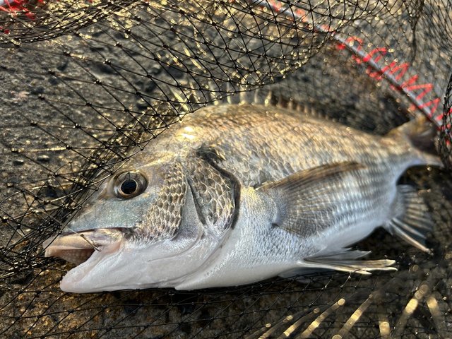 雨予報ではありましたが、短時間勝負で波止チヌに行ってきました。12月ですがエサ取りは多く、まだまだ寒チヌという感じではありませんでした。今回はマキエを底に集め、棒ウキで底付近を狙うポイント釣法です。しっかりマキエを打ってから仕掛けを組んだのが功を奏し、なんと1投目からチヌをキャッチ。チヌの活性は高くすぐに2枚目もキャッチ。それからはフグの猛攻と強風に苦しみ、最後は雨が降ってきて納竿としました。