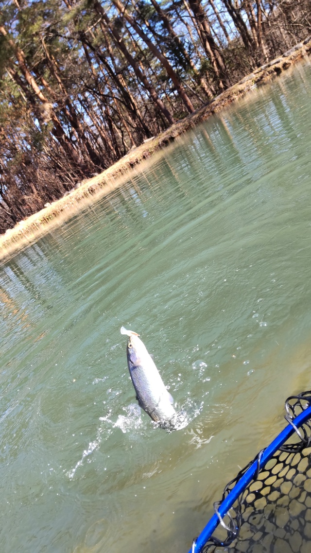 前日の雪で厳しいかと思われましたがそんなことは無く、朝から白系のスプーンでポツポツアタリがあります。日中魚が浮いてからはKIDの0.6やGJ、クランクなどでも飽きない程度にアタリがありました。