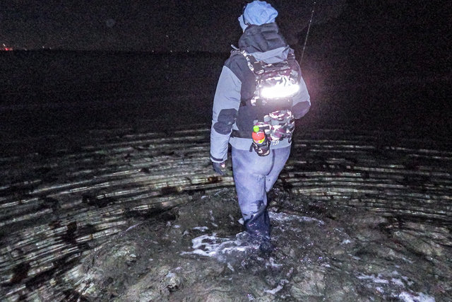 潮の流れと風向きが、どうにもしっくり来ないので水中を細かく歩きながら、食わせスポットを探って行く。