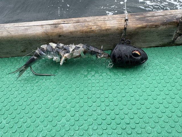 アタリがわからず、でもイワシはかじられている。。。午前中は4本。
