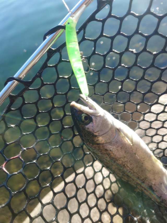 ハイバースト1.6g、バックストローク55HS、鯱28Sで回遊待ちの間にポツポツ拾いながら、トレモDR-SSを着水一拍待ちからのゆっくり巻きでしばらく釣れ続きました。