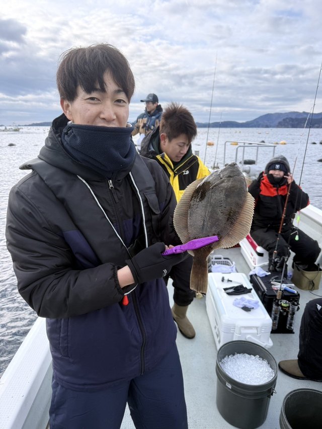 泉バイパス店、脇神です^^たまには海へということで雄勝、立浜の新海王丸さんでカレイかかり釣りに行ってきました。朝一は風も緩かったのですが9時過ぎからはビュービューに。狙ったポイントに係留できず苦戦。そんなことよりもとにかくショウサイフグまみれでエサも針もどんだけあっても足りません。水温も十分低くなっているのですがフグが元気すぎます。抵抗の大きな両天秤だと中層からフグに目をつけられて着底と同時にすでにフグが掛かってしまうほど。低水温に順応した進化したフグに悩まされました。春先のフィーバーにまたチャレンジしたいですね(^O^)ノ