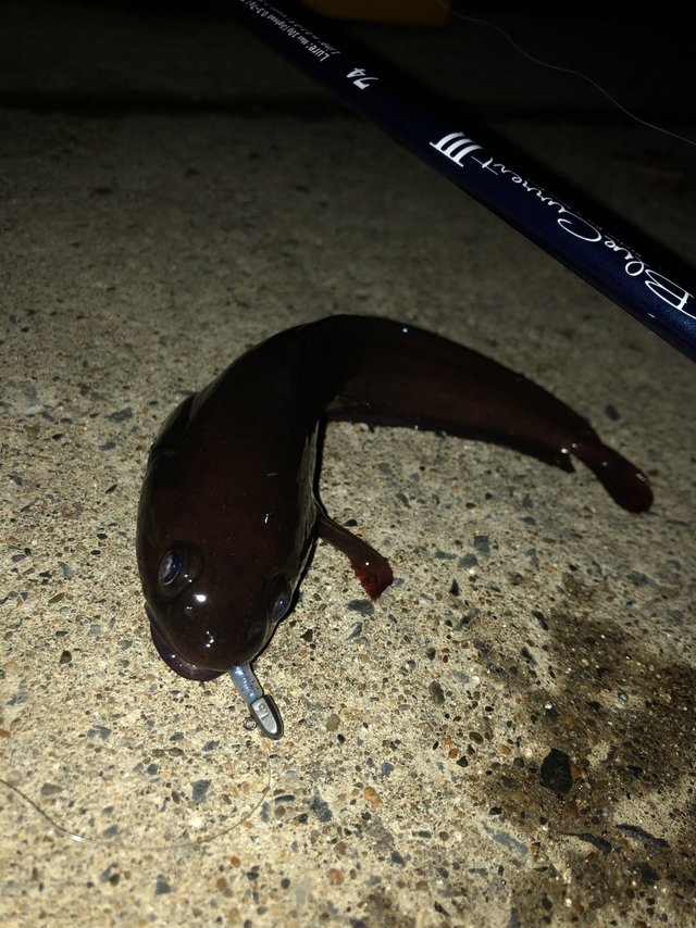 一カ所目のポイントにつくと、まずはとても寒い。雪もちらつき、いい感じに冬の釣りです。小魚は泳いでいるものの、ルアーに喰いついてくるようなサイズの魚は少なく悪戦苦闘。手堅くボトムを探っていると待望のアタリがあり、ぬらーッと上がってきたのはドンコちゃん。今年のファーストフィッシュはまさかのドンコで、何とも渡辺らしい幕開けとなりました。その後メバルやらをキャッチしましたが、風が強くなり寒さに耐えられずギブアップ!魚の顔が見れたのでよかったですね!