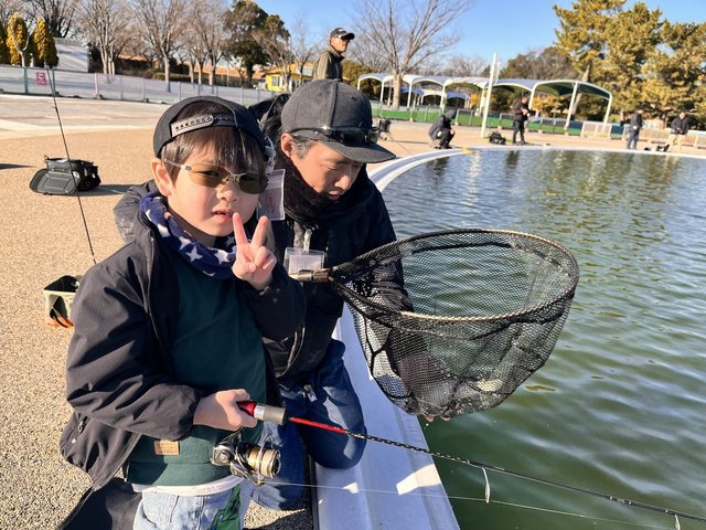 新年最初の釣りは同店田端副店長一家と川越水上公園でのプールトラウトへ。