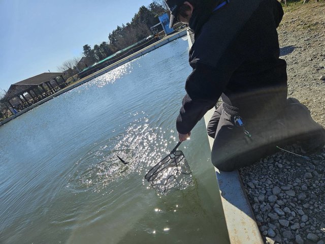 今回お邪魔したフィッシングステージは少し前にブランド鱒が放流されたとのこと。