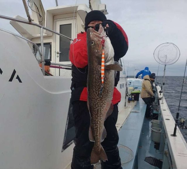 水深50m前後の浅場に回ってきているタラを