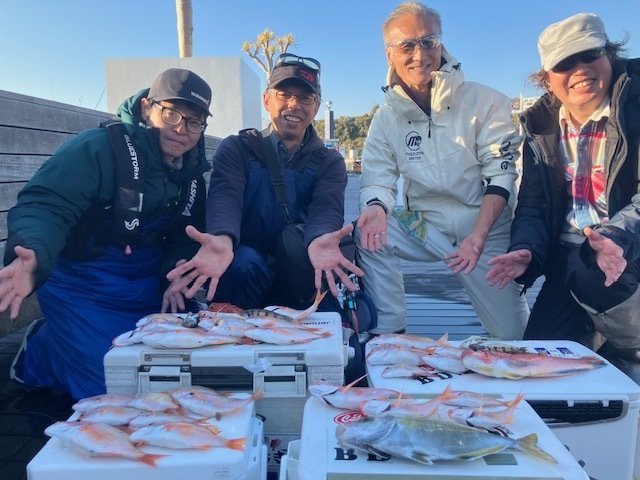 その前回は春先に良くみられる海のヨゴレにやられ、アタリが極端に少なく苦戦しました。あれから3週間が経ち、良い変化を信じての釣行でした。しかしながら、結果から言うと惨敗!!まだ、ところどころにヨゴレが残り、実績があるポイントも外道1匹当たらない場所も多数でした。とにかく、綺麗な潮を探してのランガン釣り。数十か所流してようやく1カ所だけレンコダイの活性が高い場所を発見!!なんとかレンコダイのお土産を確保して終了!!本命こそあまり釣れませんでしたが、仲間とワイワイ楽しい釣行となりました!!潮が戻れば釣れると信じて!アマダイは再度リベンジしたいと思います!皆様も是非お出かけください!!