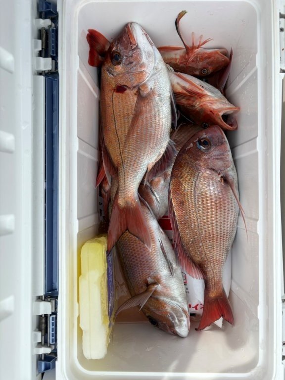そこから同行者にもマダイがポンポンと釣れて全員安打!