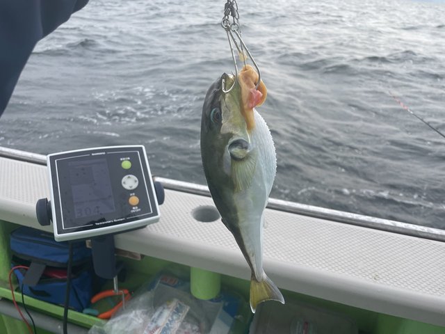 潮が動いていないタイミングは浅場でトラフグはキャッチならず、潮が動き始めてから深場へ移動し、自分なりに考えながら誘い下げしているとフッと違和感!?