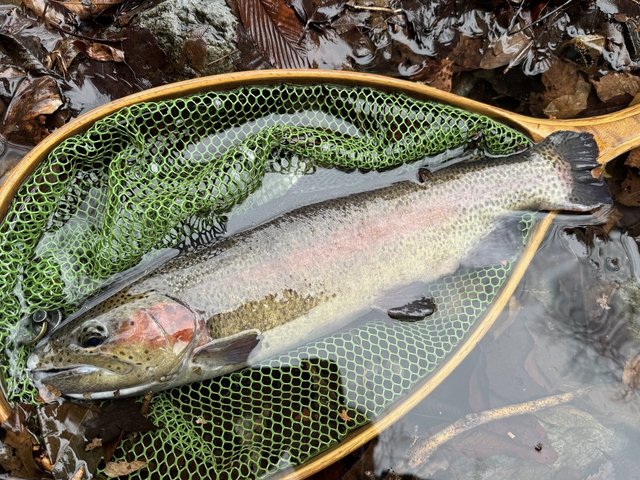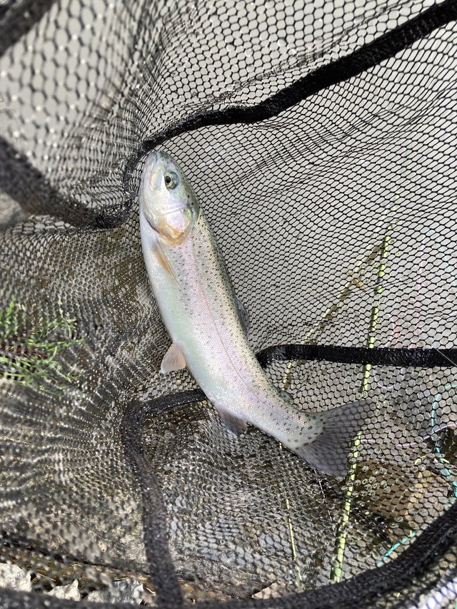 竿抜けになっていそうな小場所、エサ釣りで狙えない様なオーバーハングの下を丁寧にしらみ潰しに探ると大きなイワナとニジマスをキャッチ出来ました。