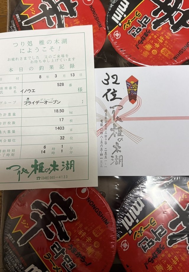 東久留米店井上です。だいぶ暖かくなってきました。椎の木湖で毎月第二金曜日に開催しているフライデーオープンに行ってきました。5時に入場開始で5時半に現着しました。受付で成田富里店スタッフ山口とバッタリ!3号桟橋で並びでやりました。6時スタートで9尺メーターセットの「粒もじ」から入り20分で一枚目を捕まえましたが、なかなか続かず苦戦。11時まで7枚。8尺に変更して同じ釣り方で再スタート。アタリの数が多くなり14時まで10枚追加して合計17枚で終了しました。この日の参加者は164名とのことでした。また参加したいと思います。